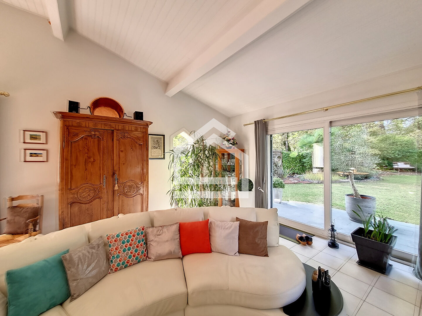 L'agence Cadre d'Envies vous propose cette agréable maison familiale à l'entretien irréprochable, entourée de verdure dans un lotissement calme de Saint-Aubin de Médoc. Proche des commodités et des transports en commun. Vous découvrirez une entrée chaleureuse qui dessert un double séjour / salle à manger avec une belle hauteur sous plafond et une intense luminosité grâce à sa parfaite exposition et aux nombreuses ouvertures sur le jardin. Une cheminée en pierres naturelles avec répartiteur de chaleur donne à cette pièce de vie toute sa convivialité et son élégance. Une grande cuisine indépendante aménagée et équipée avec son îlot central est complétée par une arrière cuisine faisant office de cellier/ buanderie permettant des rangements fonctionnels. Le rez-de-chaussée dispose également d'un espace nuit parental composé d'un dégagement avec placards, d'une chambre et sa salle de bains, d'un bureau ou dressing et d'un WC séparé avec lave mains. A l'étage vous profiterez d'une mezzanine d'environ 40 m2. De deux chambres avec parquet flottant, d'une salle de bains et d'un WC séparé. La maison est équipée d'une pompe à Chaleur (PAC) Un double garage carrelé avec une porte automatique offre un vaste espace de rangements. La parcelle entièrement arborée et paysagée, dispose d'une belle terrasse en ardoises naturelles avec store électrique. Pas de vis à vis et cadre privilégié avec espaces naturels protégés en fond de parcelle. L'arrosage gouttes à gouttes automatique est installé . Le jardin d'accueil fermé par un portail automatique permet de garer 2 véhicules. Honoraires vendeurs. Contact : Caroline au 06.45.80.67.01 www.cadredenvies.fr Merci de privilégier les appels téléphoniques ou de vérifier vos spams régulièrement en cas de contact mail.