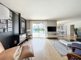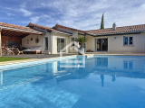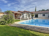 L'agence Cadre d'Envies vous présente une agréable maison de plain pied dans un quartier calme et recherché de Saint Aubin de Médoc. Vous découvrirez une entrée avec placards, des toilettes indépendants avec fenêtre et lave mains, ainsi qu'une agréable pièce de vie, baignée de lumière, composée d'un salon et d'une salle à manger. Vous disposez d'une cuisine indépendante, aménagée et équipée. L'accès direct vers l'extérieur vous permet de profiter de la terrasse et de la vue vers la piscine. L'arrière cuisine propose un cellier et une buanderie. Cette maison parfaitement entretenue dispose de deux espaces nuits distincts. L'espace parental est composé d'une chambre, d'un grand dressing, et d'une salle de bains avec baignoire, douche, double vasque, toilettes, fenêtre et sèche serviettes. L'espace enfants dispose de deux chambres avec placards et d'une salle d'eau avec douche, double vasque, fenêtre et sèche serviettes. Une pièce supplémentaire actuellement utilisé en bureau et chambre d'amis est très spacieuse. L'ensemble est harmonieux, décoré au gout du jour et l'espace est optimisé. A l'extérieur, vous disposez d'un agréable jardin paysager, d'une piscine au sel 10 x 5, d'un puits et d'un arrosage automatique, d'un garage et d'un local de rangement. Sans oublier la cuisine d'été qui vous permettra de passer des moments agréables en famille ou entre amis. Au calme et proche des commodités, ce lieu de vie incroyable aspire au bonheur. Ce bien rare, qui sera disponible au 1er août, est à découvrir sans tarder. Honoraires vendeurs. Les informations sur les risques auxquels ce bien est exposé sont disponibles sur le site Géorisques : www.georisques.gouv.fr Contact : Karine au 06.47.02.30.72
