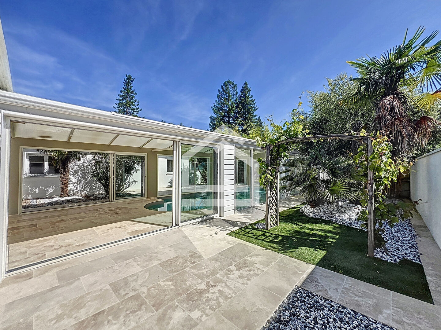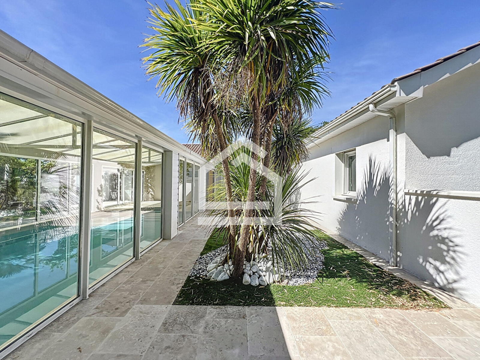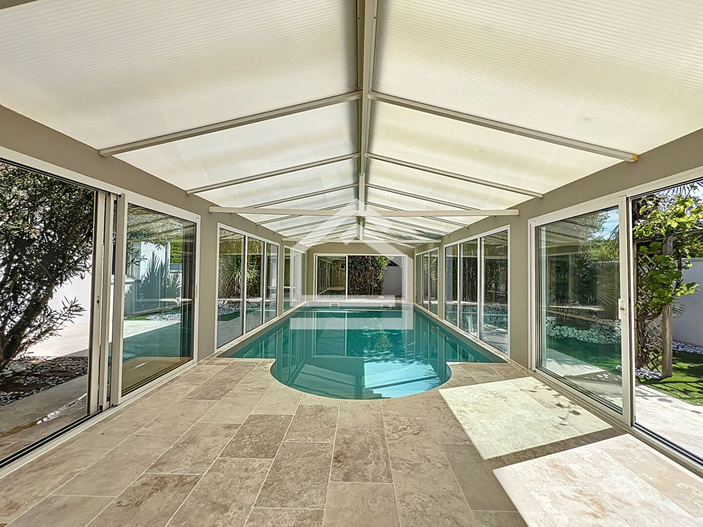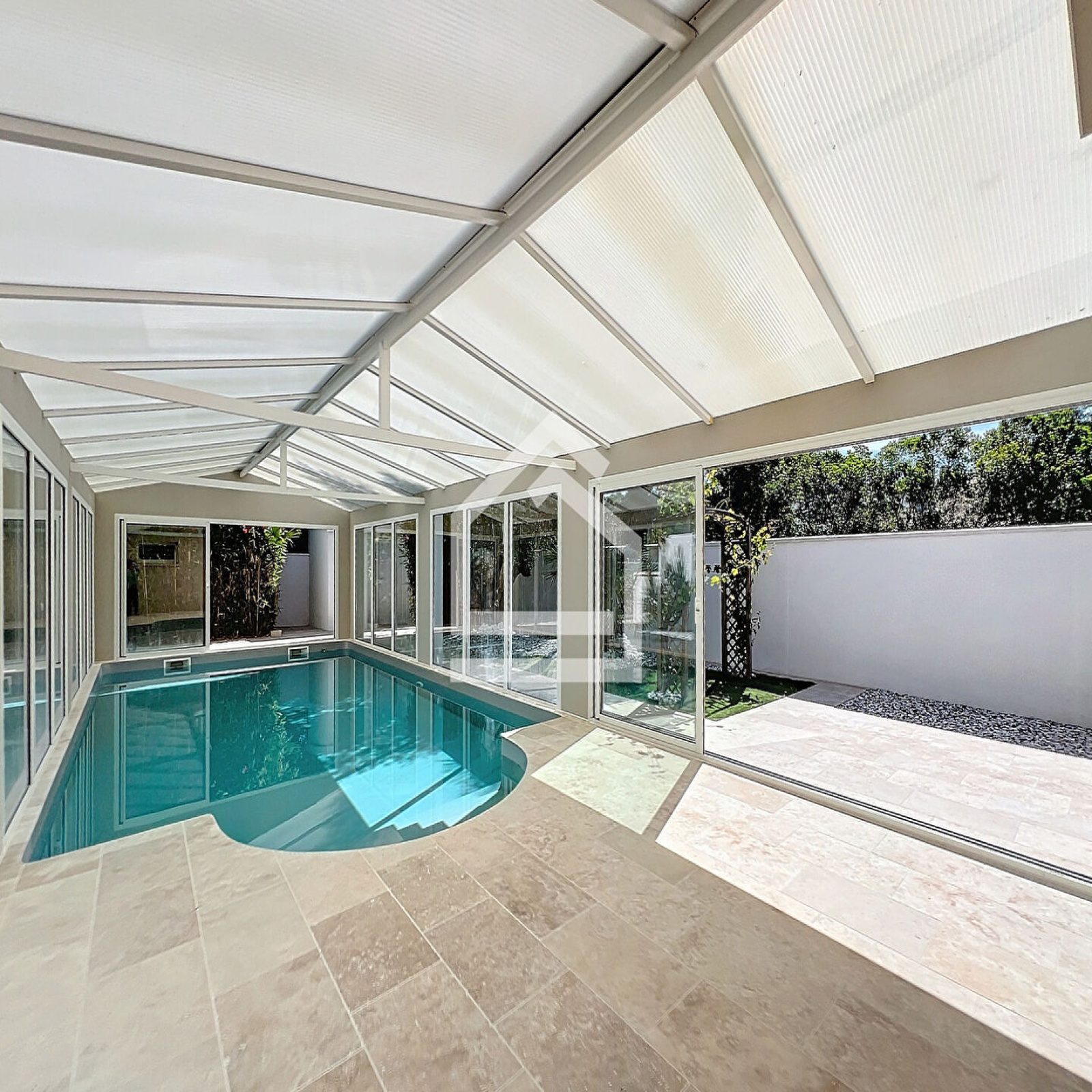 L'agence Cadre d'Envies vous présente en exclusivité une maison entièrement rénovée de 155 m2 sur une parcelle de 1040 m2. Vous découvrirez une entrée avec placards, un salon avec cheminée, une salle à manger, une cuisine fermée aménagée et équipée, un cellier et une buanderie. Ces pièces de vie sont très lumineuses et seront le lieu idéal pour installer votre famille. L'espace nuit est composé d'une suite parentale avec dressing et salle de bains avec baignoire, double vasque et douche. Puis vous profiterez de trois chambres et d'une salle d'eau. L'ensemble est complété par trois garages, des terrasses en travertin et un arrosage automatique. L'extérieur est très agréable et arboré. La piscine couverte et chauffée vous permettra de profiter de moments agréables en famille ou entre amis, toute l'année. Cette maison agréable, fonctionnelle et lumineuse, est à découvrir sans tarder. Prix de vente honoraires d'agence inclus : 645 000 Euros Honoraires à la charge de l'acquéreur 30 000 € TTC Prix net vendeur 615 000 Euros Les informations sur les risques auxquels ce bien est exposé sont disponibles sur demande ou sur le site Géorisques : www.georisques.gouv.fr Contact : Karine KURZYDLO au 06 47 02 30 72 www.cadredenvies.fr
