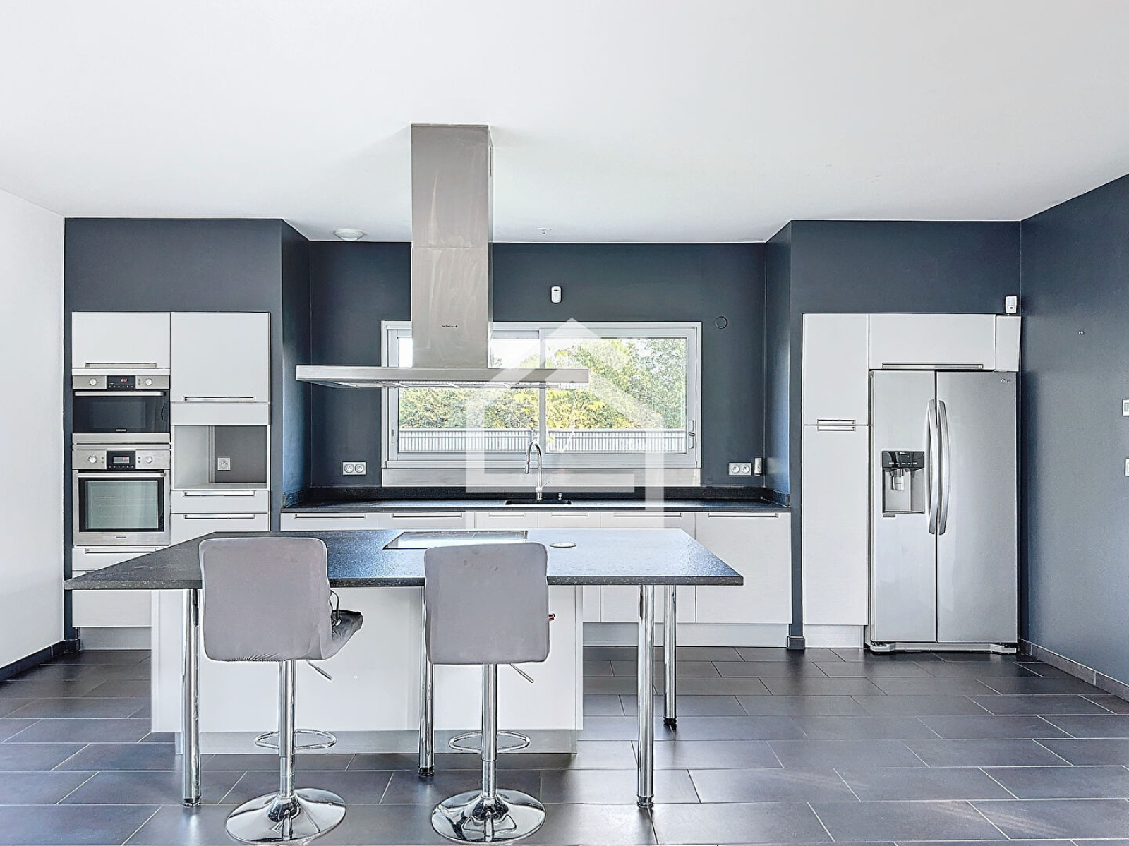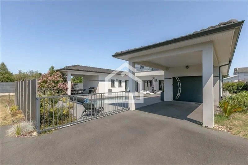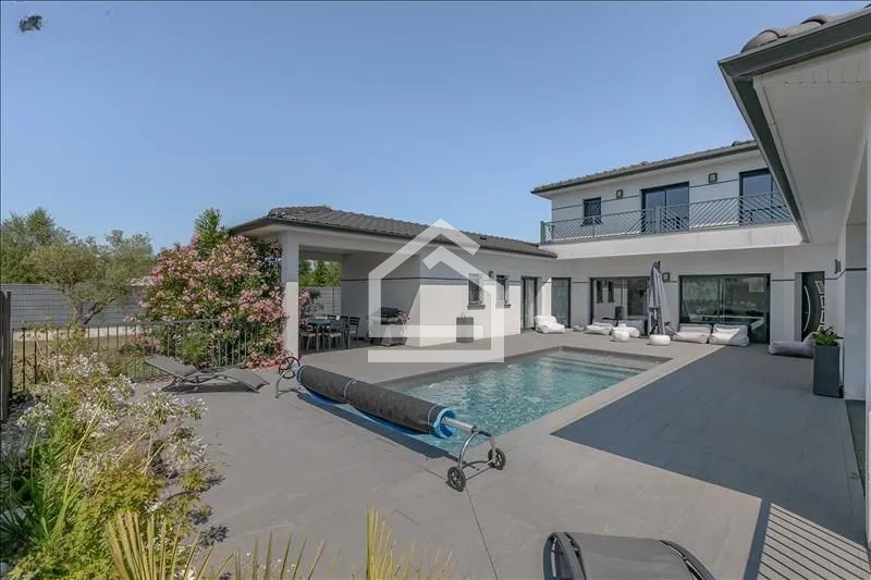 L' Agence Cadre d'Envies est ravie de vous présenter cette somptueuse villa contemporaine construite en 2015, idéalement située dans un quartier résidentiel prisé, à proximité immédiate des commerces et des écoles. D'une surface généreuse de 146 m², cette demeure familiale offre des prestations haut de gamme et un cadre de vie raffiné. Dès l'entrée, vous serez séduit par un vaste salon-séjour baigné de lumière, prolongé par une cuisine ouverte, moderne et entièrement équipée. De là, profitez d'une vue panoramique sur les extérieurs, où vous attend une superbe terrasse et une piscine chauffée (3,5 x 8 m), parfaite pour des instants de détente. Une terrasse couverte ajoute un espace convivial, idéal pour des moments à l'abri en toute saison. Le rez-de-chaussée comprend également une chambre ou un vaste bureau avec placard intégré, un toilette indépendant et une suite parentale avec dressing et une salle de bain avec baignoire et douche à l'italienne et ses toilettes, offrant confort et intimité. Un somptueux escalier en pierre naturelle vous mènera à l'étage, où se trouvent deux chambres avec accès à un balcon surplombant la terrasse, ainsi qu'une salle d'eau élégante. Implantée sur une parcelle arborée de 1 000 m², cette villa bénéficie d'un environnement préservé, bordé de deux espaces naturels protégés et non constructibles. Équipements & confort Chauffage au sol avec option rafraîchissement pour un confort optimal en toute saison. Volets roulants motorisés, avec commande centrale et individuelle. Visiophone permettant une ouverture à distance. Puits de forage alimentant un système d'arrosage automatique. Local technique pouvant également servir de stockage. Boulodrome, parfait pour des moments conviviaux en famille ou entre amis. Côté stationnement, un garage avec porte automatique, un carport, ainsi que trois à quatre places de parking sur la parcelle fermée par un portail automatique complètent ce bien. Dotée des dernières technologies domotiques, cette villa séduit par ses finitions soignées et son agencement pensé pour le confort de toute la famille. Vidéo de présentation disponible sur demande. Un bien d'exception à découvrir sans tarder ! N'attendez plus et contactez-nous pour organiser une visite. DPE: A (50 kWh/m2) GES: A (1 kWh/m2) Contact : Christelle Martin au 06.32.99.27.20 www.cadredenvies.fr Prix de vente honoraires d'agence inclus 750 000 Euros Honoraires à la charge de l'Acquéreur 28 846 Euros TTC Prix net vendeur 721 154 Euros Les informations sur les risques auxquels ce bien est exposé sont disponibles sur demande ou sur le site Géorisques : www.georisques.gouv.fr
