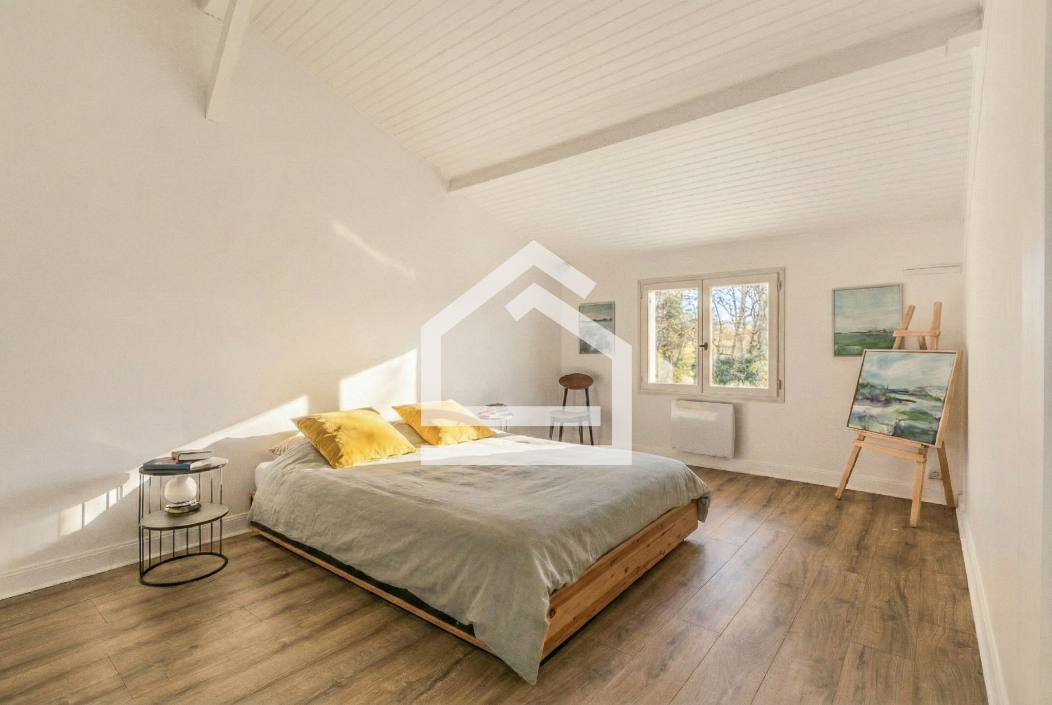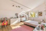 À l’étage, l’espace nuit se prolonge avec quatre chambres supplémentaires, un WC indépendant et une salle de bains, permettant d’accueillir une grande famille ou de recevoir en toute sérénité.