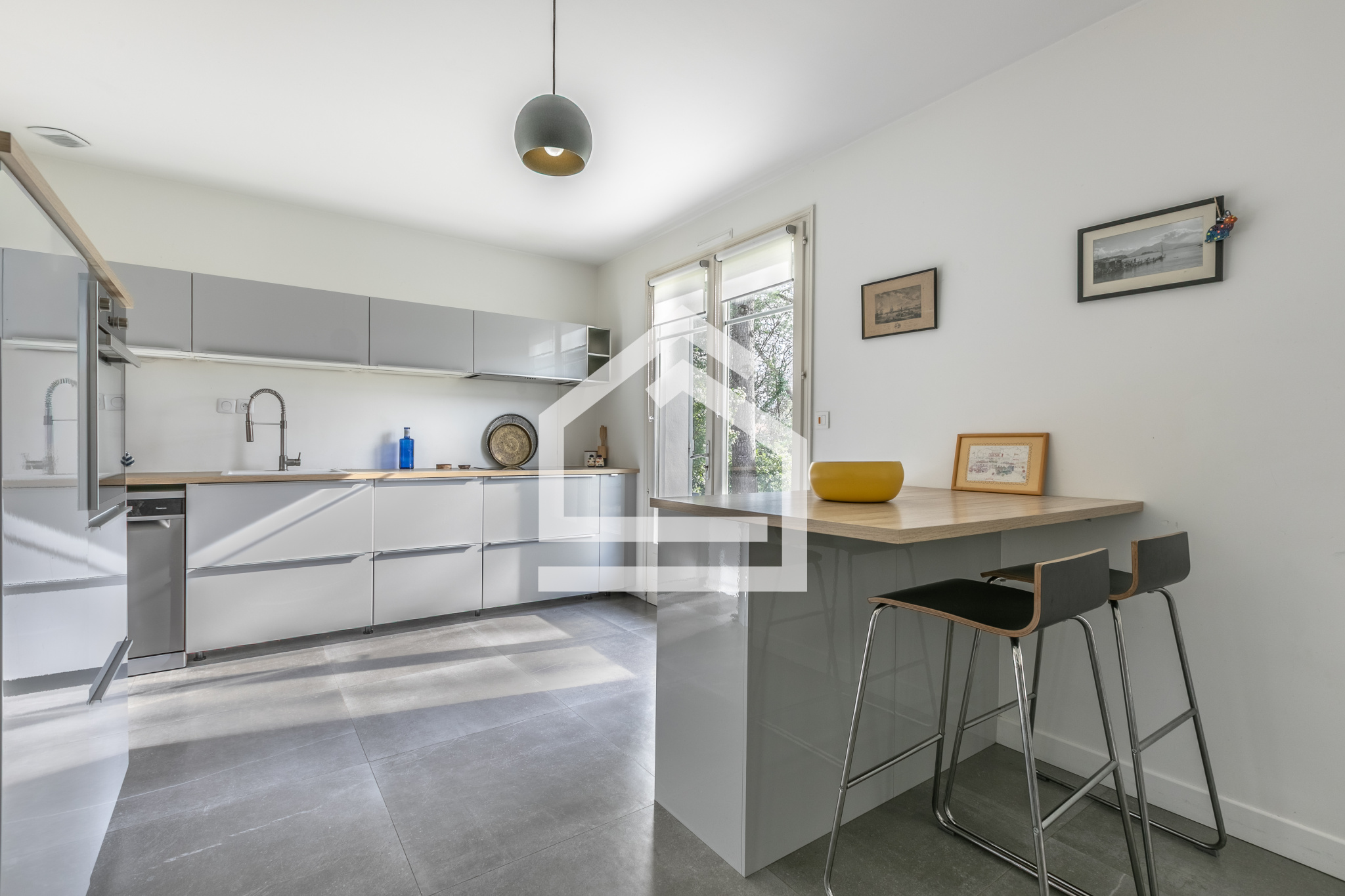 Dès l’entrée, agrémentée d’un placard intégré, vous serez charmé par une vaste et lumineuse pièce de vie, harmonieusement composée d’un salon convivial, d'une cheminée, d’une salle à manger élégante et d’une cuisine ouverte, aménagée et parfaitement équipée.