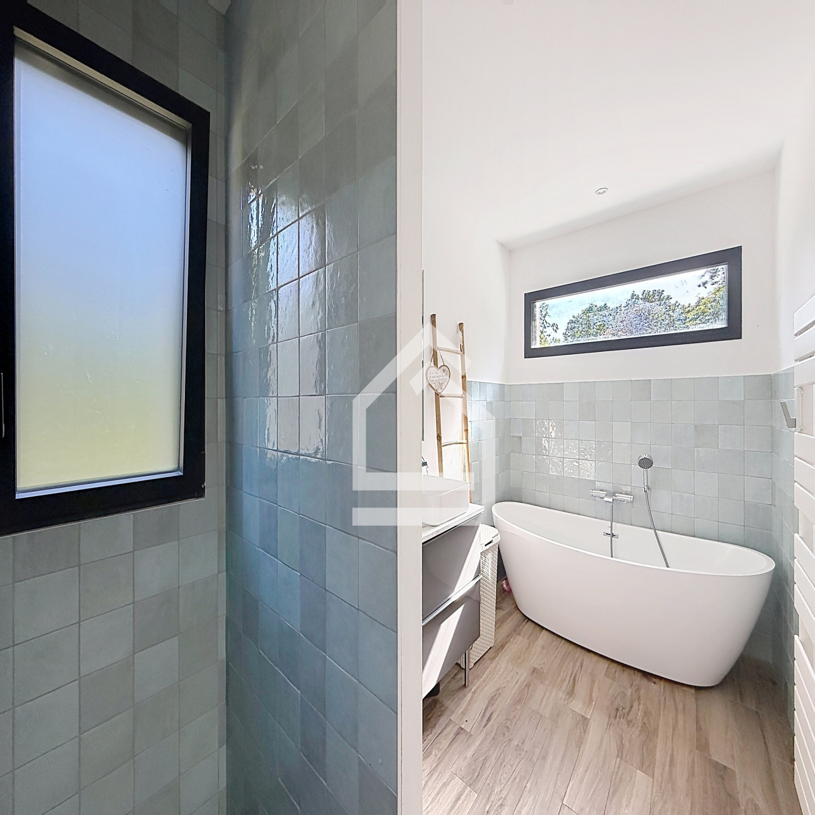 Le rez-de-chaussée accueille également un bureau idéal pour le télétravail, ainsi qu’une belle suite parentale avec rangements intégrés et salle de bains privative.