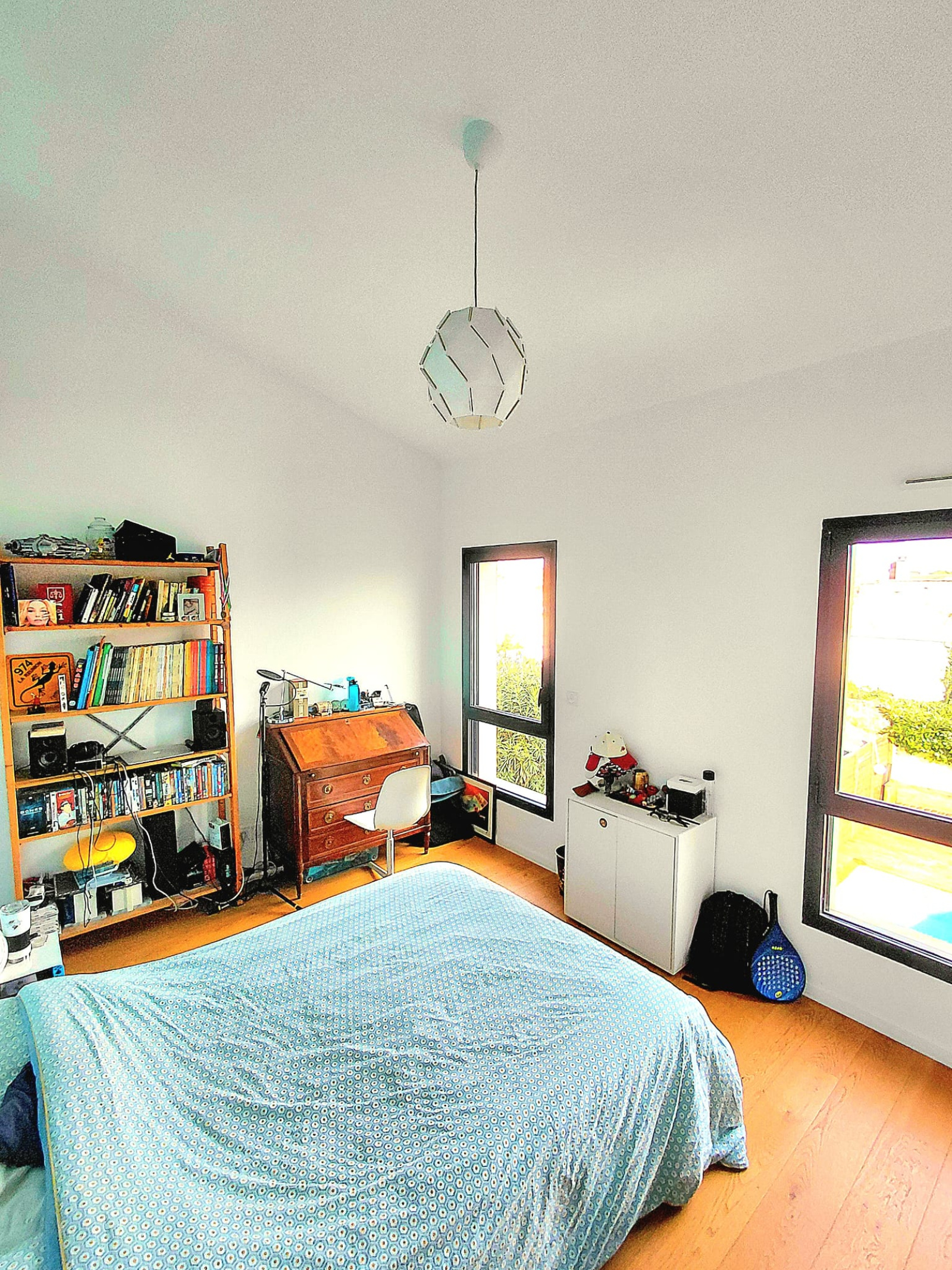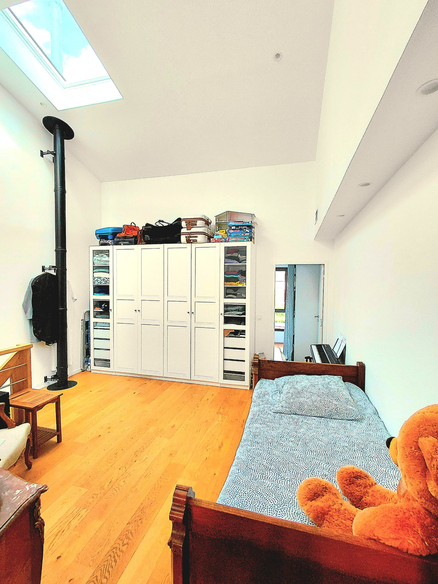 L’espace nuit est composé de trois chambres : l’une au rez-de-chaussée avec sa salle d’eau, et les deux autres à l’étage avec une salle de bain et dotées d’une belle hauteur sous plafond. Une pièce aux volumes confortables, offrant la possibilité d’aménager un bureau ou une salle de jeux, complète l’étage.
