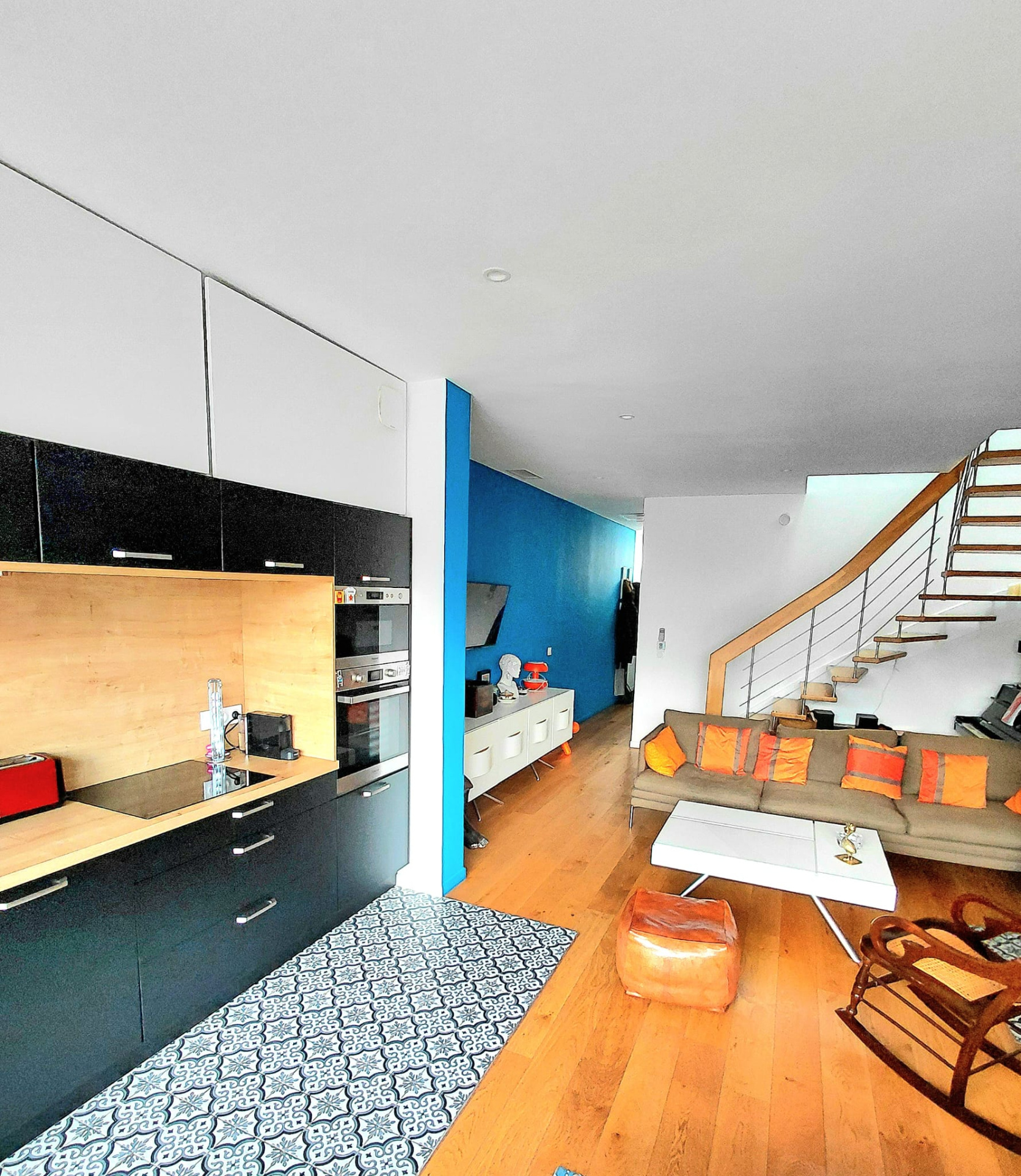 Le salon invite à la convivialité et au bien-être avec un poêle à granulés programmable, alliant design et efficacité énergétique. Ouverte sur la salle à manger, la cuisine s’intègre avec harmonie et bénéficie d’équipements électroménagers récents.