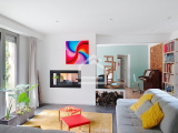 Cette maison incarne parfaitement le concept : « à chacun son espace ». Le coin « salons » comprend deux espaces de vie, chacun ouvert sur l’extérieur, et s’articulant astucieusement autour d’une belle cheminée contemporaine à double foyers.