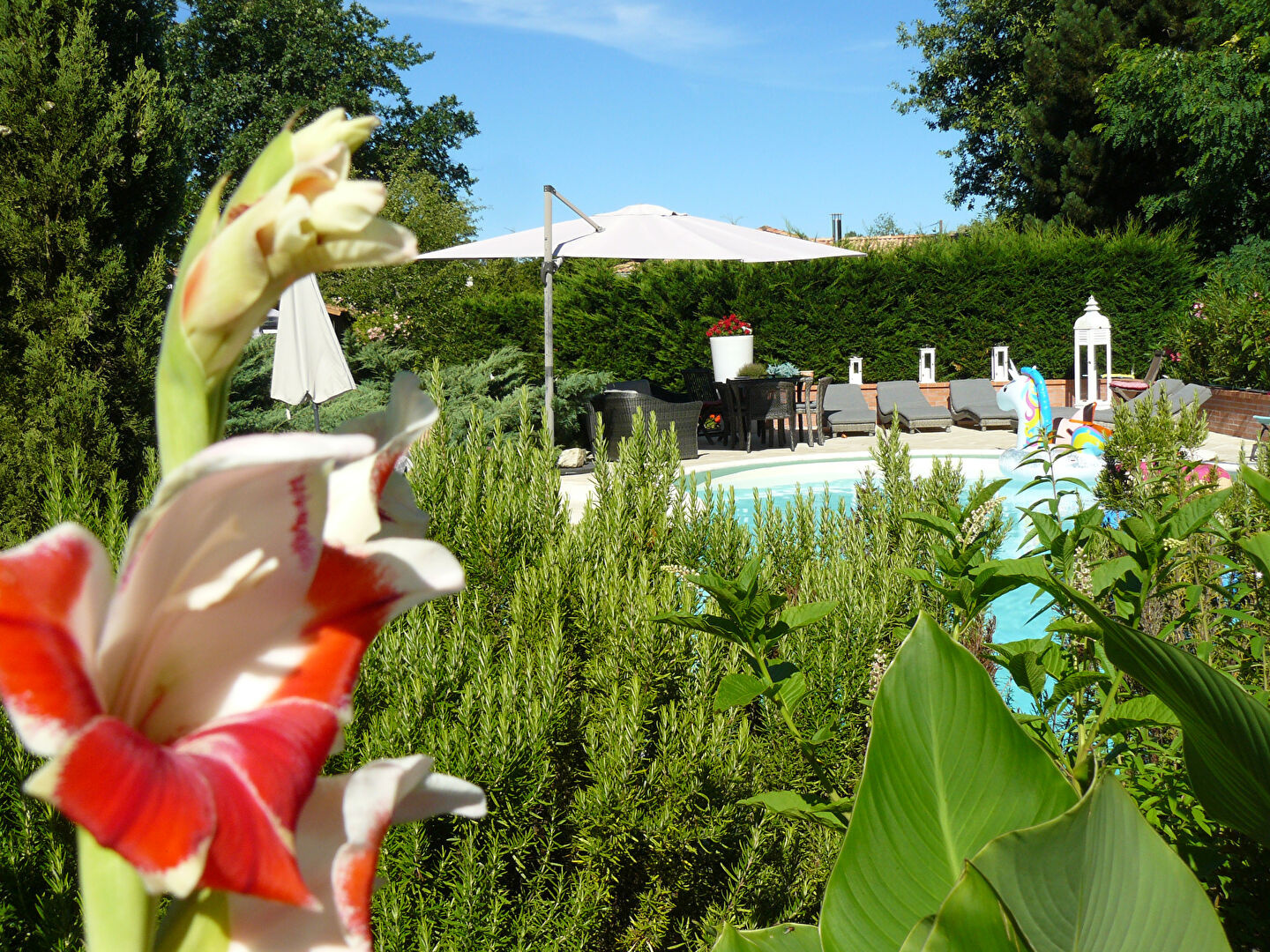 Discrètement implantée à proximité, une dépendance intimiste pouvant accueillir deux personnes, dispose de tout le confort nécessaire. À l'extérieur, la grande piscine, entourée d'une vaste terrasse arborée offre un espace privilégié, hors du temps, pour savourer la quiétude des lieux.