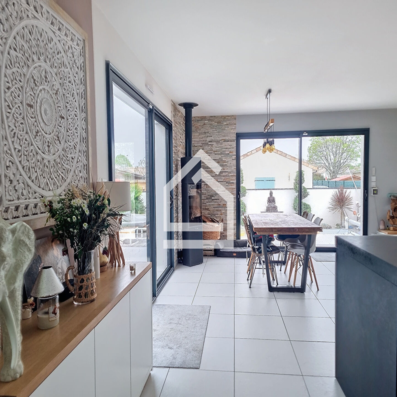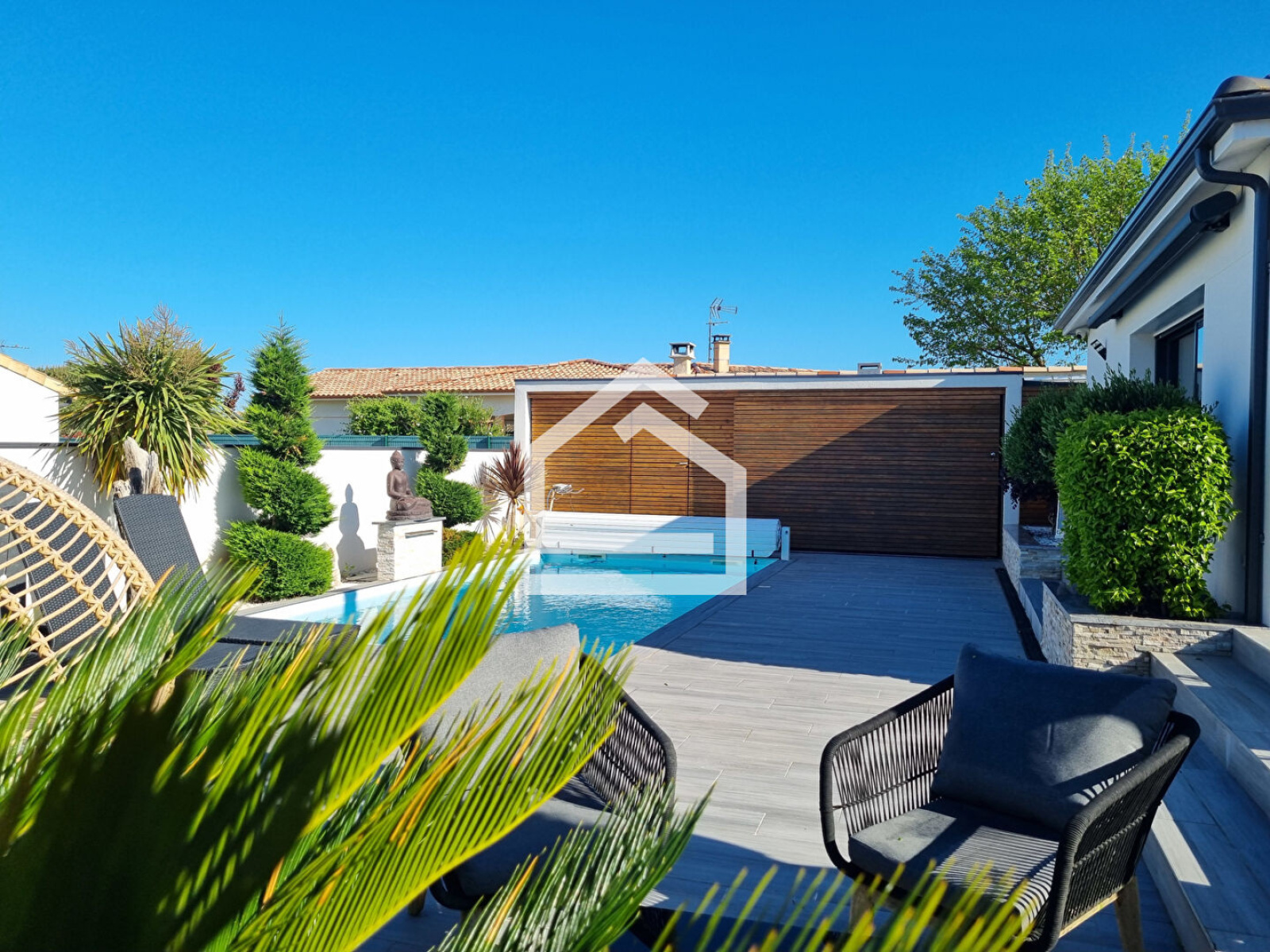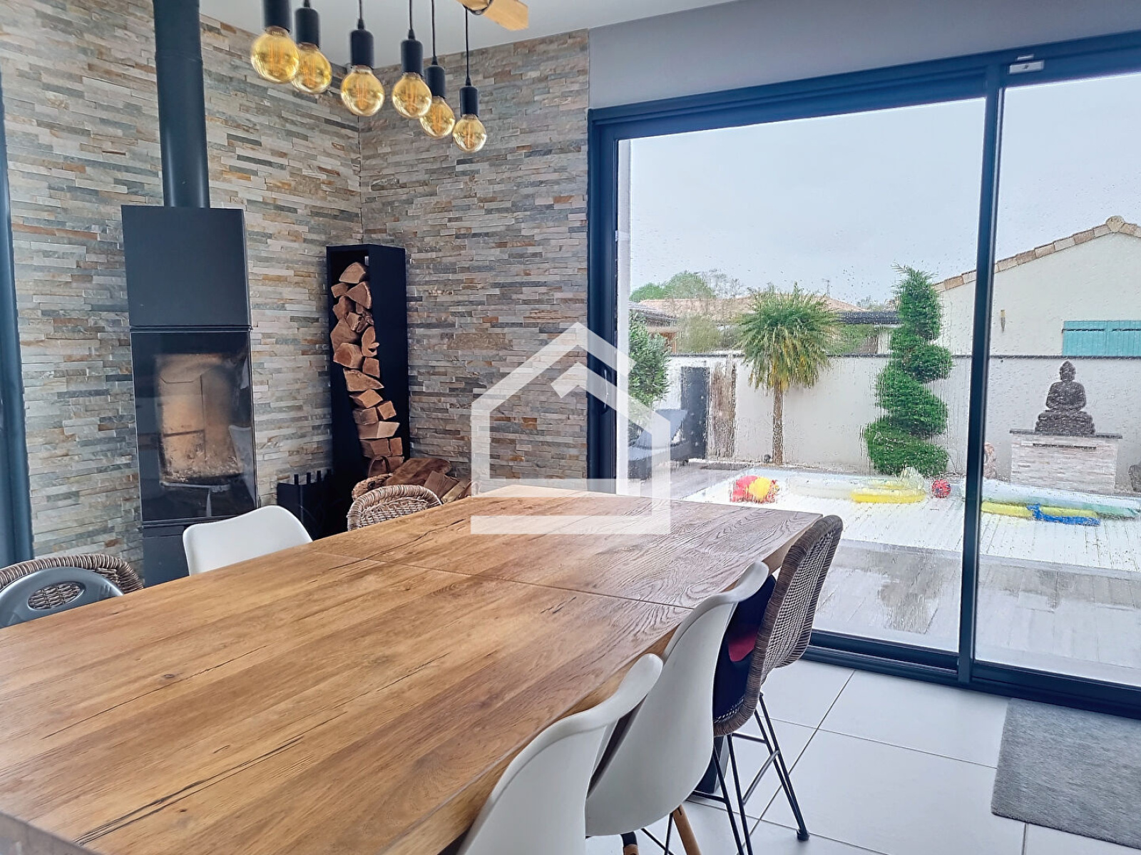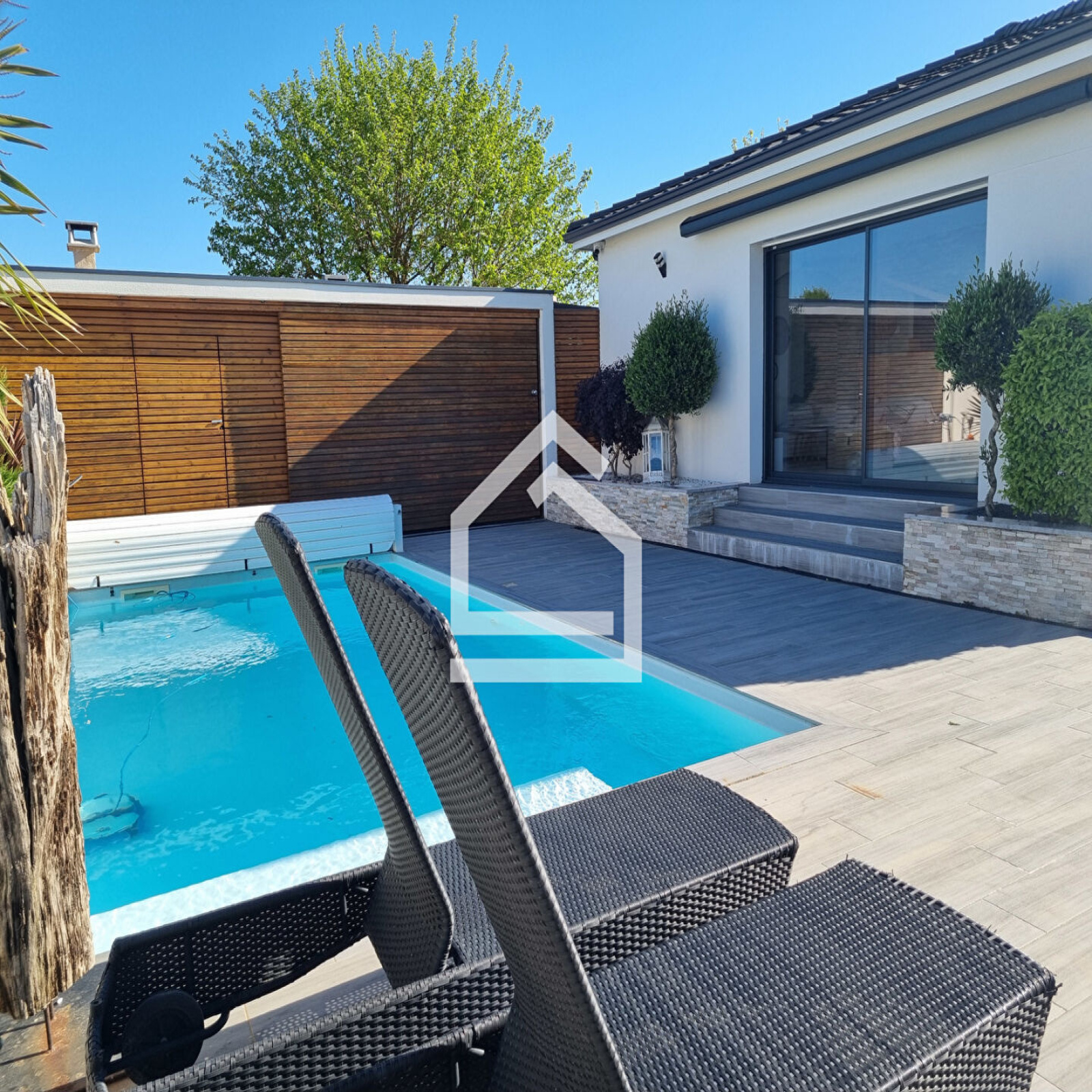 L'agence Cadre d'Envies vous présente une maison contemporaine de plain pieds, construite en 2017, aux espaces de vie agréables et située au calme, à quelques pas de toutes les commodités, écoles et collège dans un quartier recherché de Saint-Médard-en-Jalles. La maison de 134 m2 environ se compose d'une entrée agrémentée d'une magnifique cave à vins vitrée et réfrigérée qui dessert une belle pièce de vie lumineuse et spacieuse, ouverte sur les deux terrasses, la piscine et le pool house. Un point de vue privilégié en toutes saisons. Le séjour est équipé d'un poêle à bois panoramique. La cuisine américaine, aménagée et équipée se complète d'un cellier / buanderie, très fonctionnel. Vous pouvez accéder ensuite à l'espace nuit qui comprend un WC, deux chambres, une salle de bain avec baignoire balnéo, douche à l'italienne et double vasque. Une suite parentale avec salle d'eau et dressing offre un espace de qualité. Un bureau idéal pour le télétravail ou pour faire office de chambre d'appoint complète le bien. La maison a également un point fort car elle dispose d'un immense garage de 60 m2 et de 4 m de hauteur sous plafond, permettant le stationnement à l'abri de plusieurs véhicules, bateaux ou camping car. Possibilité d'utiliser cet espace pour agrandir le bien. Les extérieurs de la maison sont agencés avec goût et fonctionnalité offrant une grande terrasse carrelée avec éclairage intégré pour les repas, une piscine au sel chauffée avec rideaux et fontaine. Un pool house entièrement équipé assurera le succès de vos réceptions et réunions de famille. Dans le jardin, vous disposerez également d'une aire de jeux pour enfants, d'un atelier de bricolage et de la possibilité de garer en extérieur 4 véhicules sur la parcelle clôturée et fermée par un portail automatique. Le bien est classé en A, associé aux normes RT2012, il est construit sur vide sanitaire. Chauffage par PAC par le sol, climatisation espace nuit et volets roulants automatiques / Alarme avec détecteur de présence et caméras. Ses prestations et son style résolument contemporain font de cette maison un bien d'exception. Honoraires vendeurs. Les informations sur les risques auxquels ce bien est exposé sont disponibles sur demande ou sur le site Géorisques : www.georisques.gouv.fr Contact : Caroline 06 45 80 67 01
