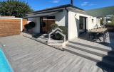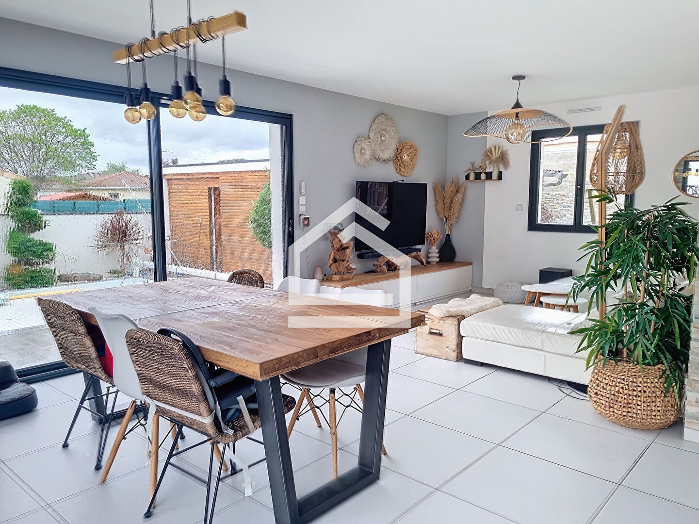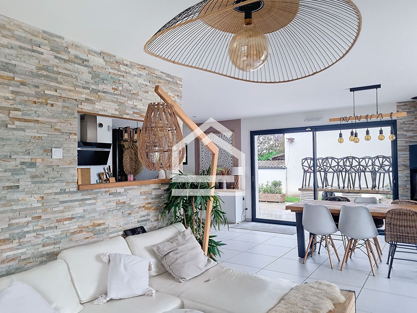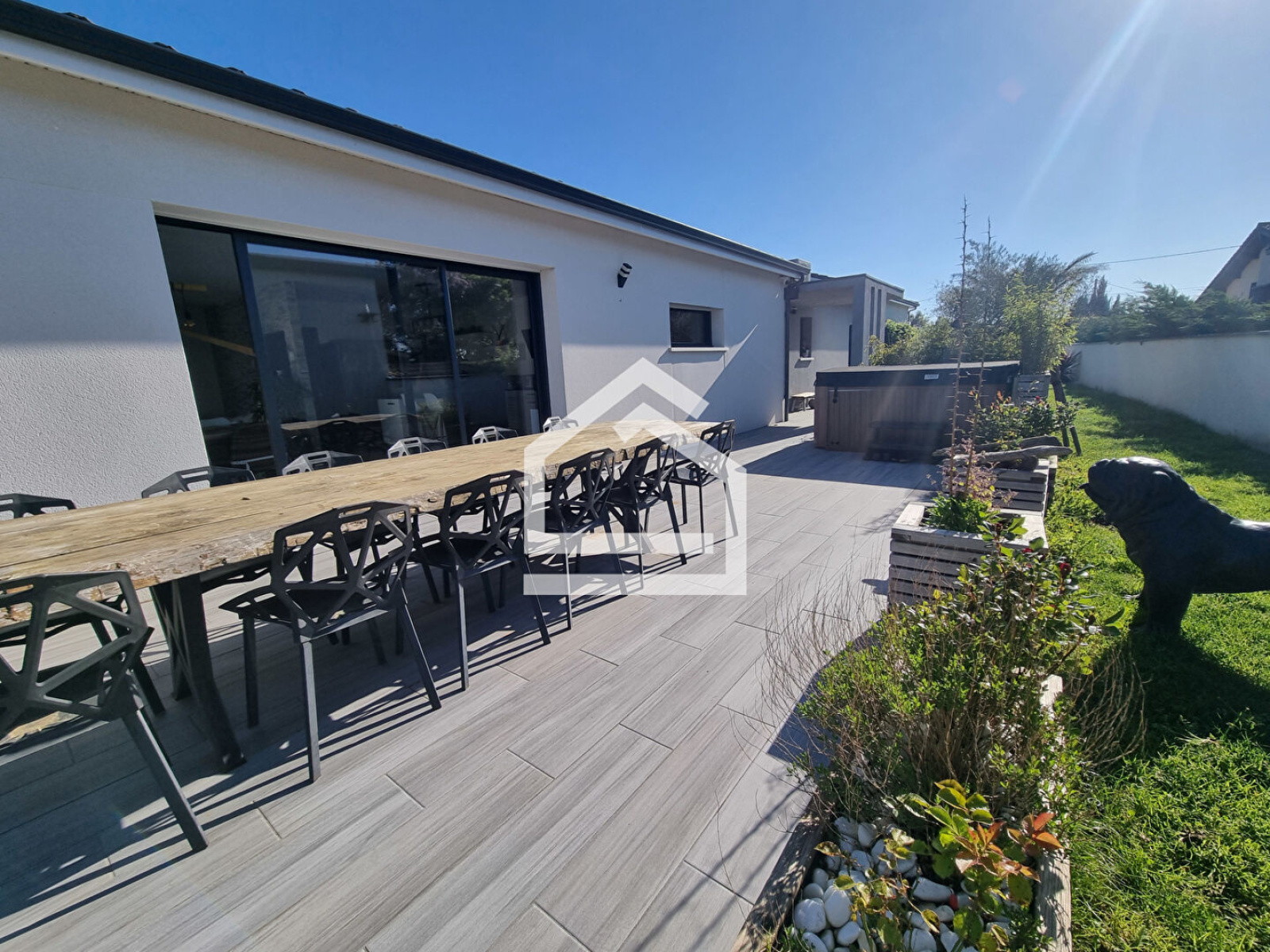 L'agence Cadre d'Envies vous présente une maison contemporaine de plain pieds, construite en 2017, aux espaces de vie agréables et située au calme, à quelques pas de toutes les commodités, écoles et collège dans un quartier recherché de Saint-Médard-en-Jalles. La maison de 134 m2 environ se compose d'une entrée agrémentée d'une magnifique cave à vins vitrée et réfrigérée qui dessert une belle pièce de vie lumineuse et spacieuse, ouverte sur les deux terrasses, la piscine et le pool house. Un point de vue privilégié en toutes saisons. Le séjour est équipé d'un poêle à bois panoramique. La cuisine américaine, aménagée et équipée se complète d'un cellier / buanderie, très fonctionnel. Vous pouvez accéder ensuite à l'espace nuit qui comprend un WC, deux chambres, une salle de bain avec baignoire balnéo, douche à l'italienne et double vasque. Une suite parentale avec salle d'eau et dressing offre un espace de qualité. Un bureau idéal pour le télétravail ou pour faire office de chambre d'appoint complète le bien. La maison a également un point fort car elle dispose d'un immense garage de 60 m2 et de 4 m de hauteur sous plafond, permettant le stationnement à l'abri de plusieurs véhicules, bateaux ou camping car. Possibilité d'utiliser cet espace pour agrandir le bien. Les extérieurs de la maison sont agencés avec goût et fonctionnalité offrant une grande terrasse carrelée avec éclairage intégré pour les repas, une piscine au sel chauffée avec rideaux et fontaine. Un pool house entièrement équipé assurera le succès de vos réceptions et réunions de famille. Dans le jardin, vous disposerez également d'une aire de jeux pour enfants, d'un atelier de bricolage et de la possibilité de garer en extérieur 4 véhicules sur la parcelle clôturée et fermée par un portail automatique. Le bien est classé en A, associé aux normes RT2012, il est construit sur vide sanitaire. Chauffage par PAC par le sol, climatisation espace nuit et volets roulants automatiques / Alarme avec détecteur de présence et caméras. Ses prestations et son style résolument contemporain font de cette maison un bien d'exception. Honoraires vendeurs. Les informations sur les risques auxquels ce bien est exposé sont disponibles sur demande ou sur le site Géorisques : www.georisques.gouv.fr Contact : Caroline 06 45 80 67 01