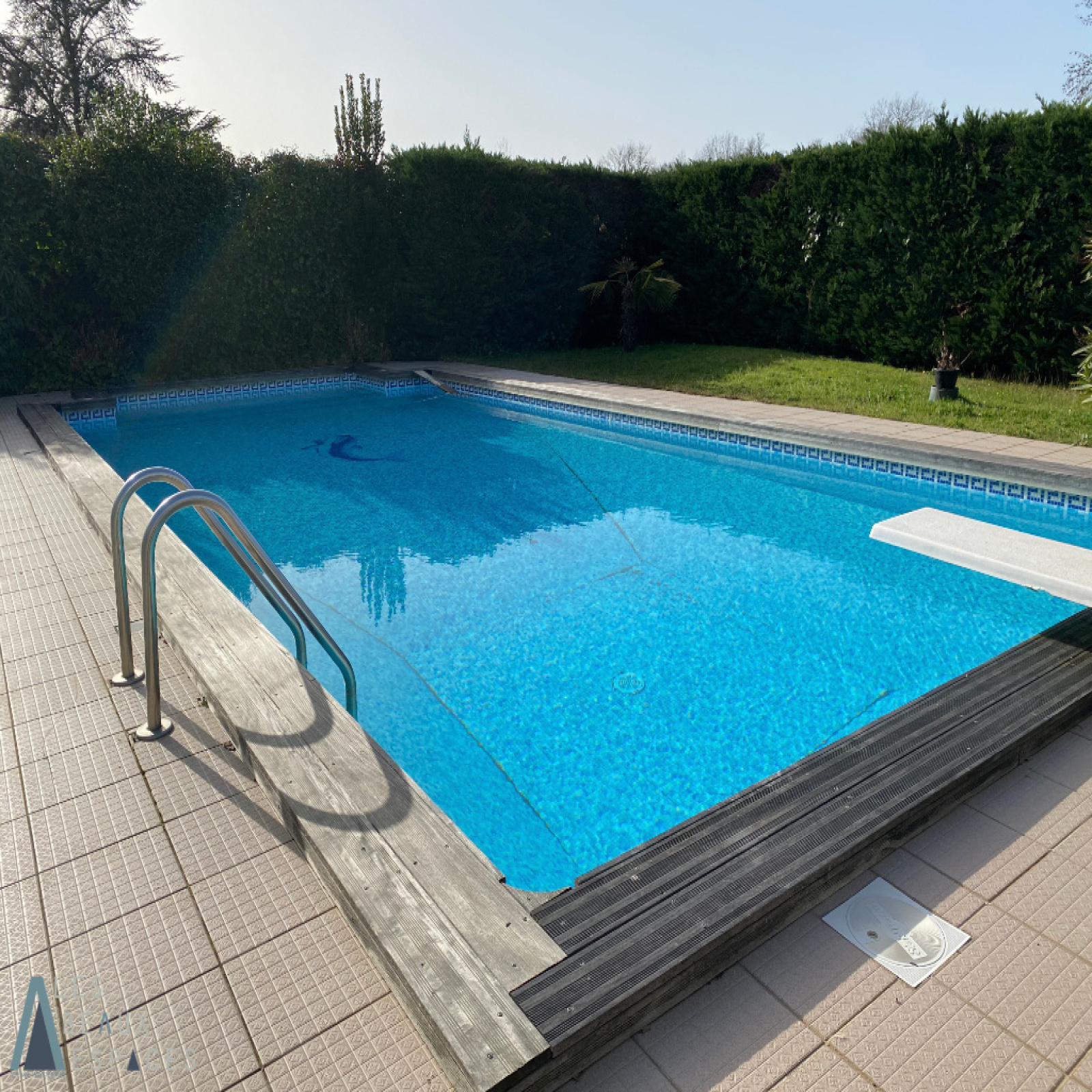 L'agence vous propose cette maison dans le quartier de Corbiac, au calme et proche des commodités. Vous découvrirez une entrée, une pièce de vie, une cuisine aménagée et équipée, 4 chambres, une salle de bains avec baignoire et douche, un WC, un cellier, une buanderie. L'ensemble sur un terrain d'environ 980 m2 est complété par un garage, une cave, une belle piscine carrelée. HV. Contact : Karine au 06.47.02.30.72 www.lesbeauxespacesimmobilier.fr