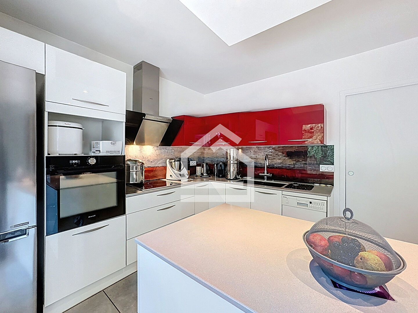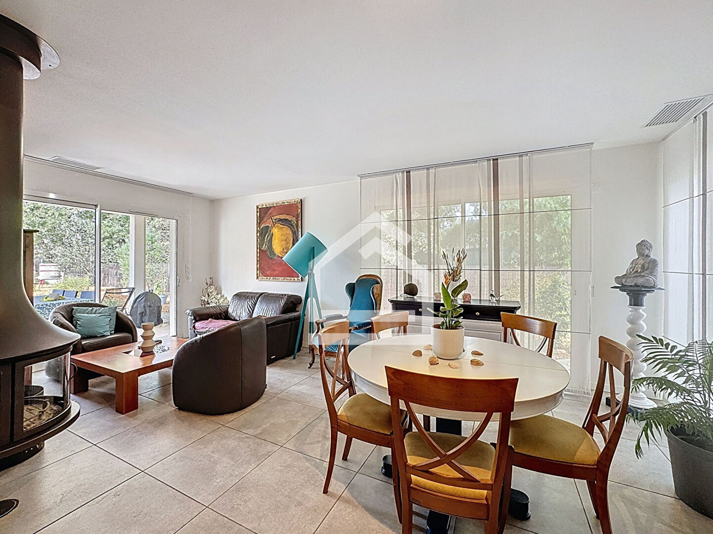 Dès l'entrée, vous serez séduits par un espace de vie lumineux et convivial. Le séjour, d'environ 33 m², s'ouvre sur une belle cuisine aménagée et équipée d'environ 14 m². Moderne et fonctionnelle, cette dernière dispose d'un îlot central et d'une ouverture directe sur l'extérieur grâce à une porte à galandage, parfaite pour profiter pleinement des beaux jours et prolonger la vie intérieure vers la terrasse et le jardin.