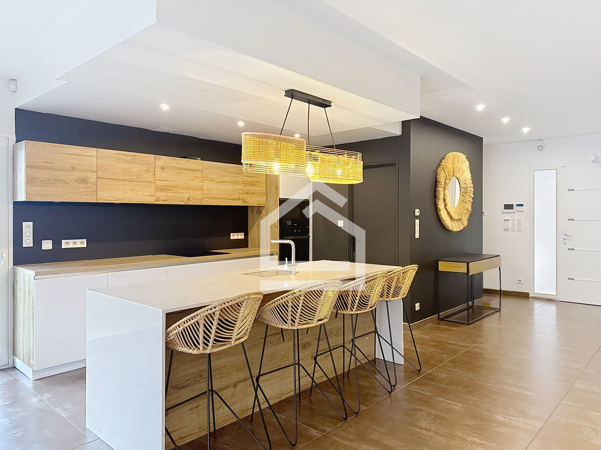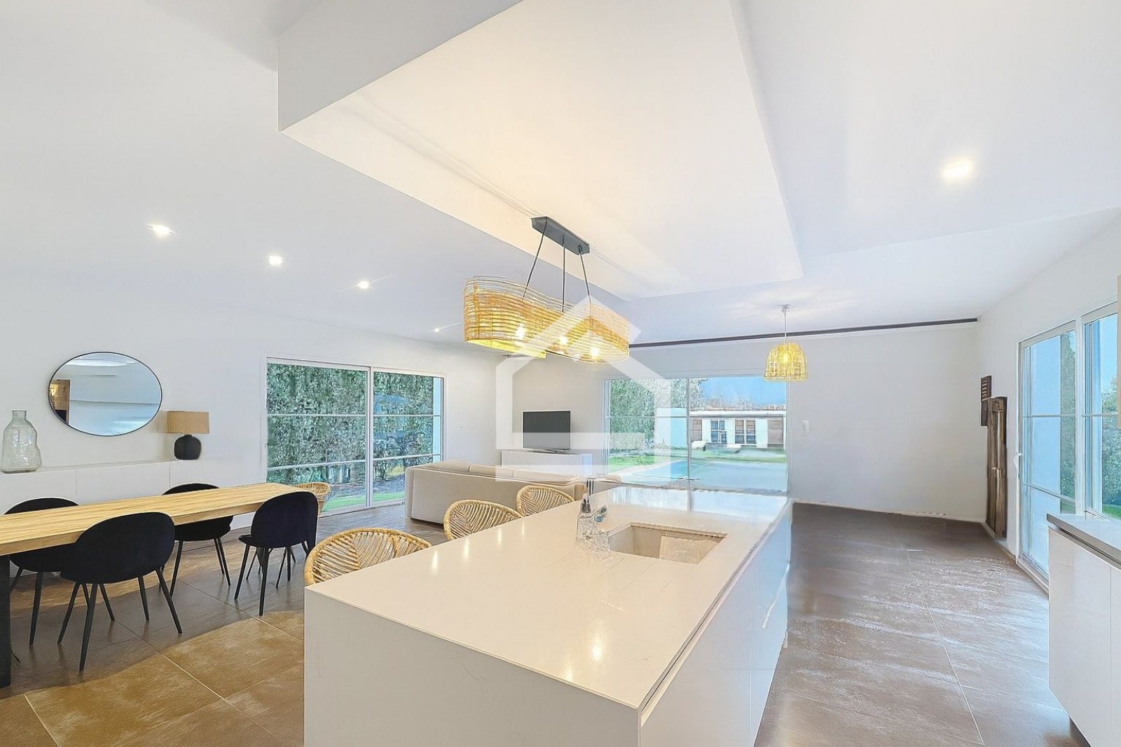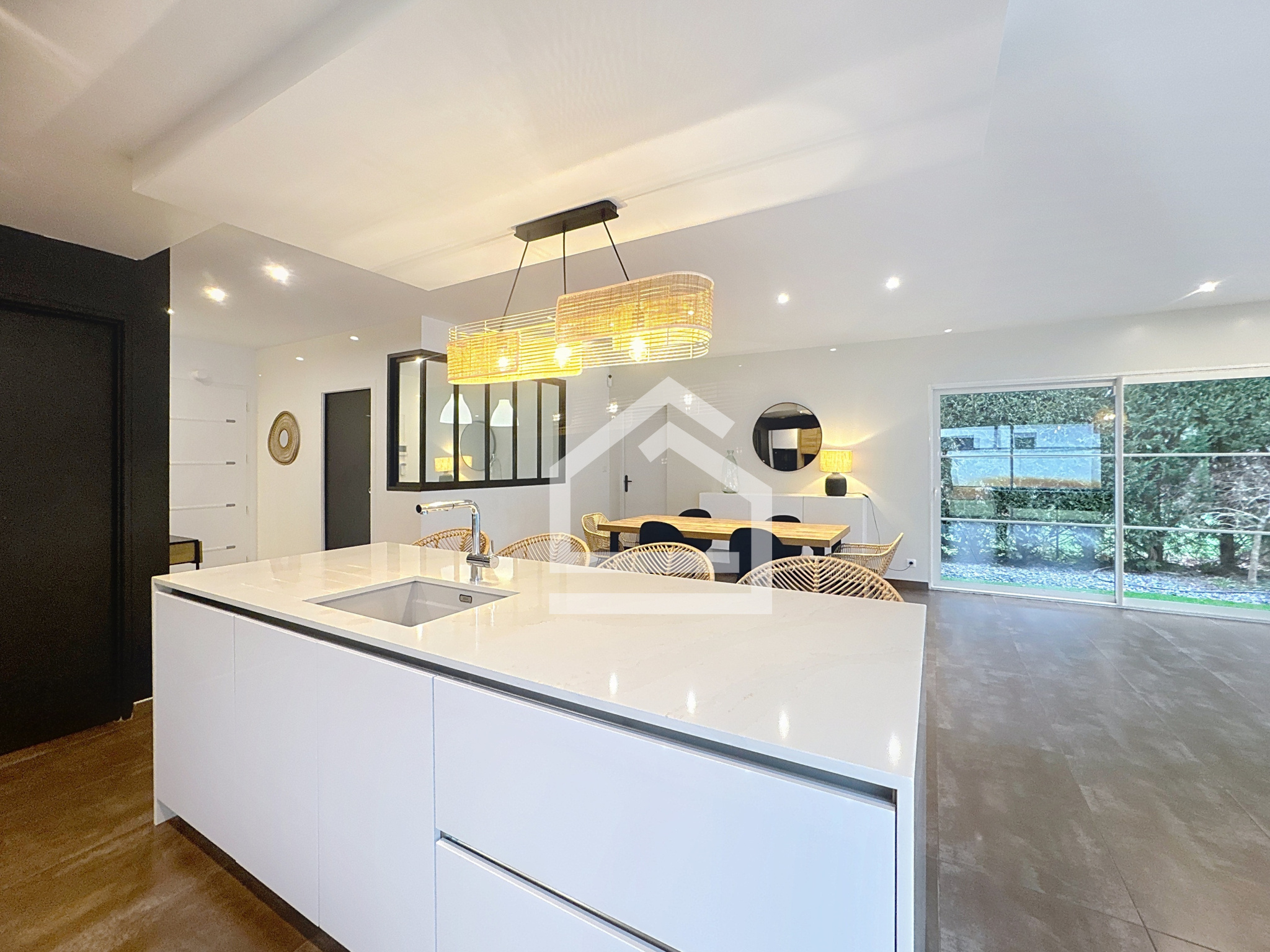 Dès l’entrée, vous serez séduit par les volumes généreux et la luminosité du vaste séjour de 62 m², prolongé par une cuisine ouverte entièrement équipée. La villa comprend également un bureau, une suite parentale avec salle de bains, trois autres chambres avec aménagements de rangement intégrés, une seconde salle d’eau, deux toilettes, ainsi qu’un cellier/buanderie fonctionnel avec accès direct au jardin.