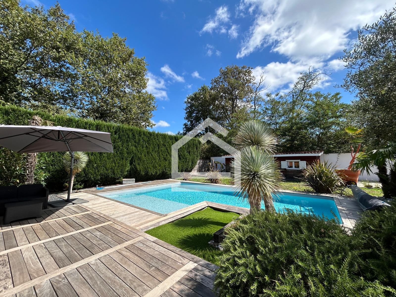 L'Agence Cadre D'Envies vous présente au fond d’une impasse paisible, en lisière de forêt, cette splendide villa de plain-pied construite en 2010 offre un cadre de vie privilégié, à proximité immédiate de Mérignac (Dassault, Thalès) et des écoles maternelles et primaires accessibles à pied.