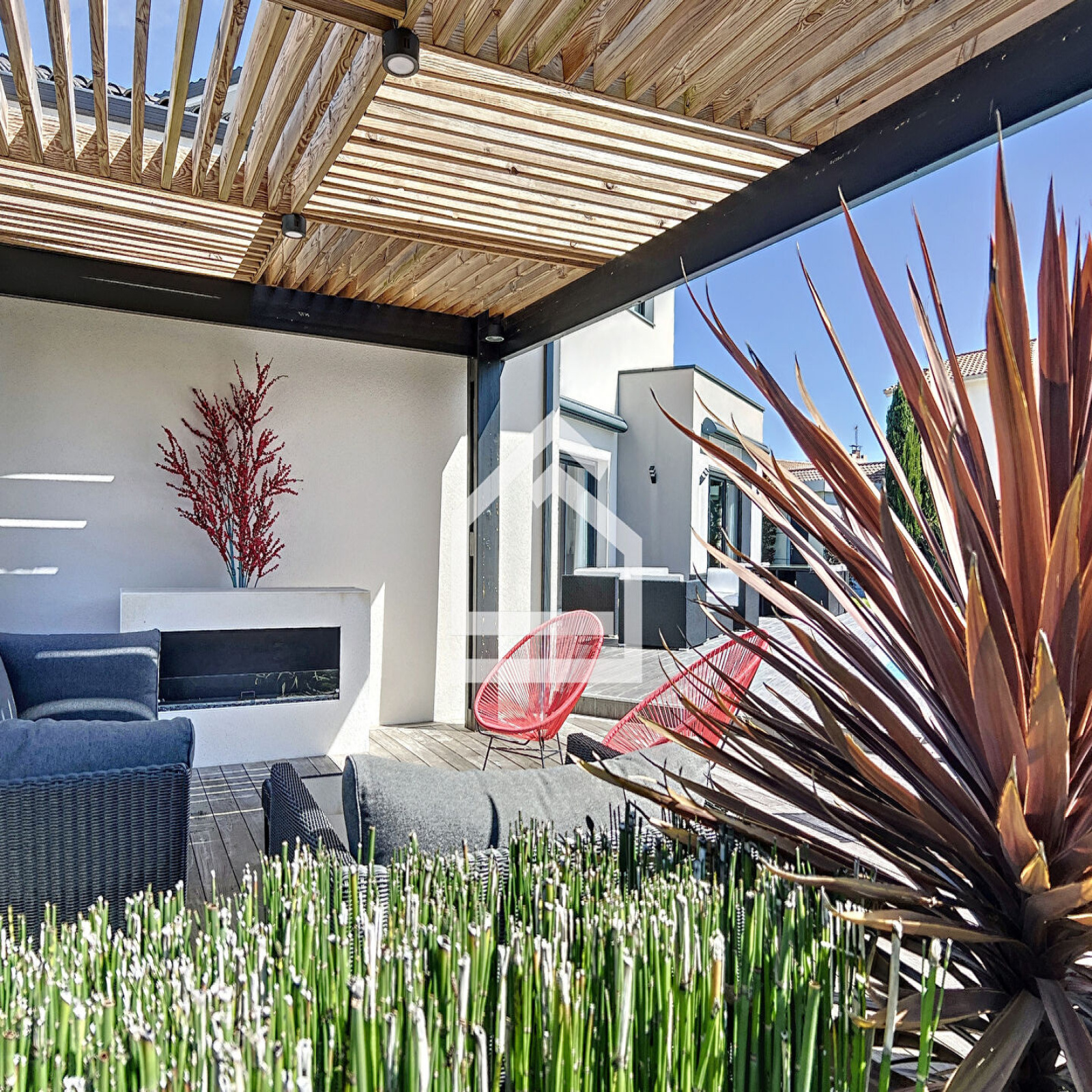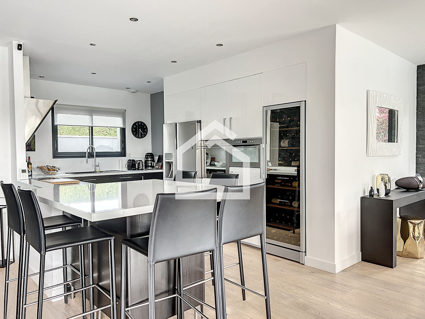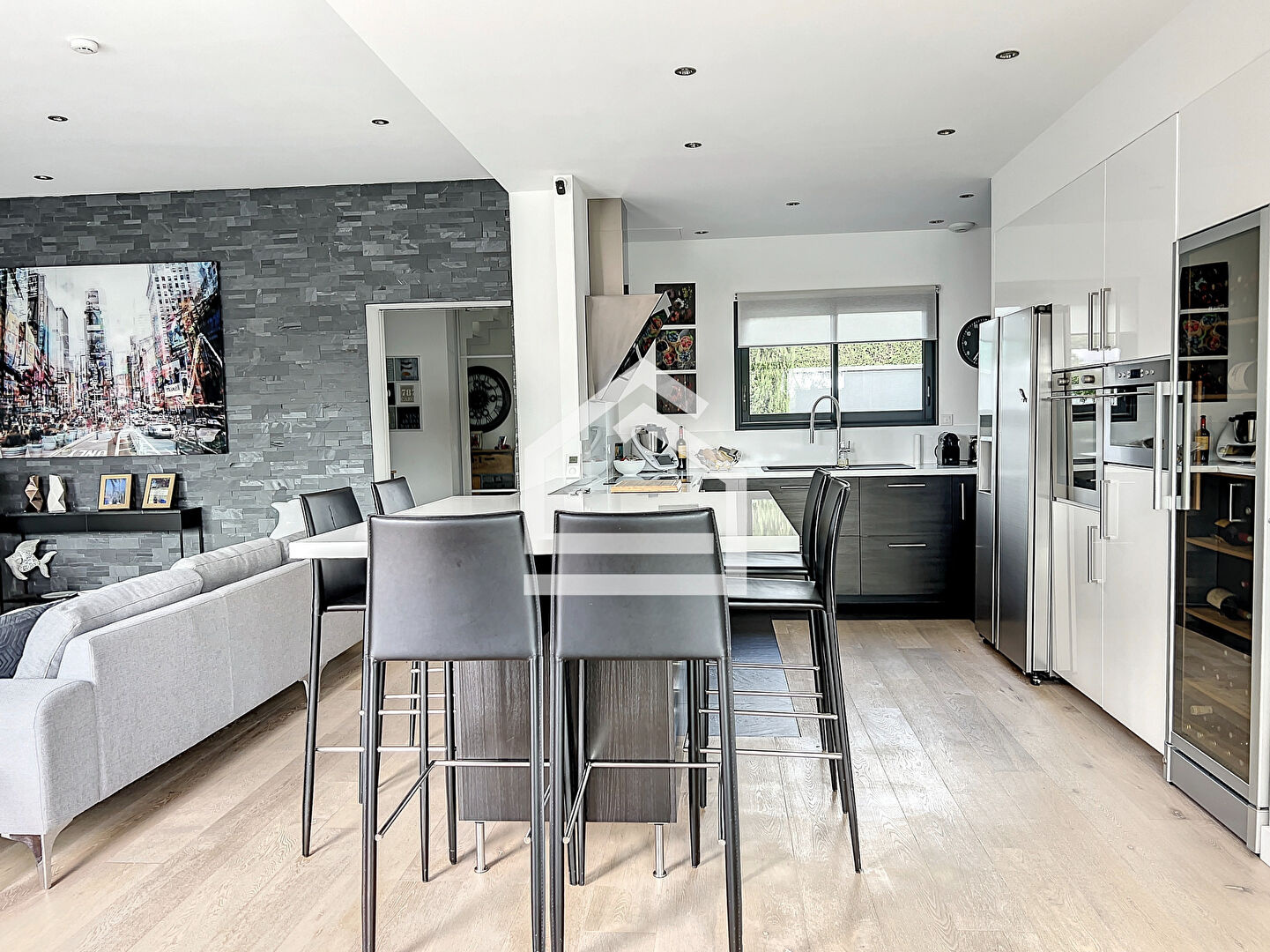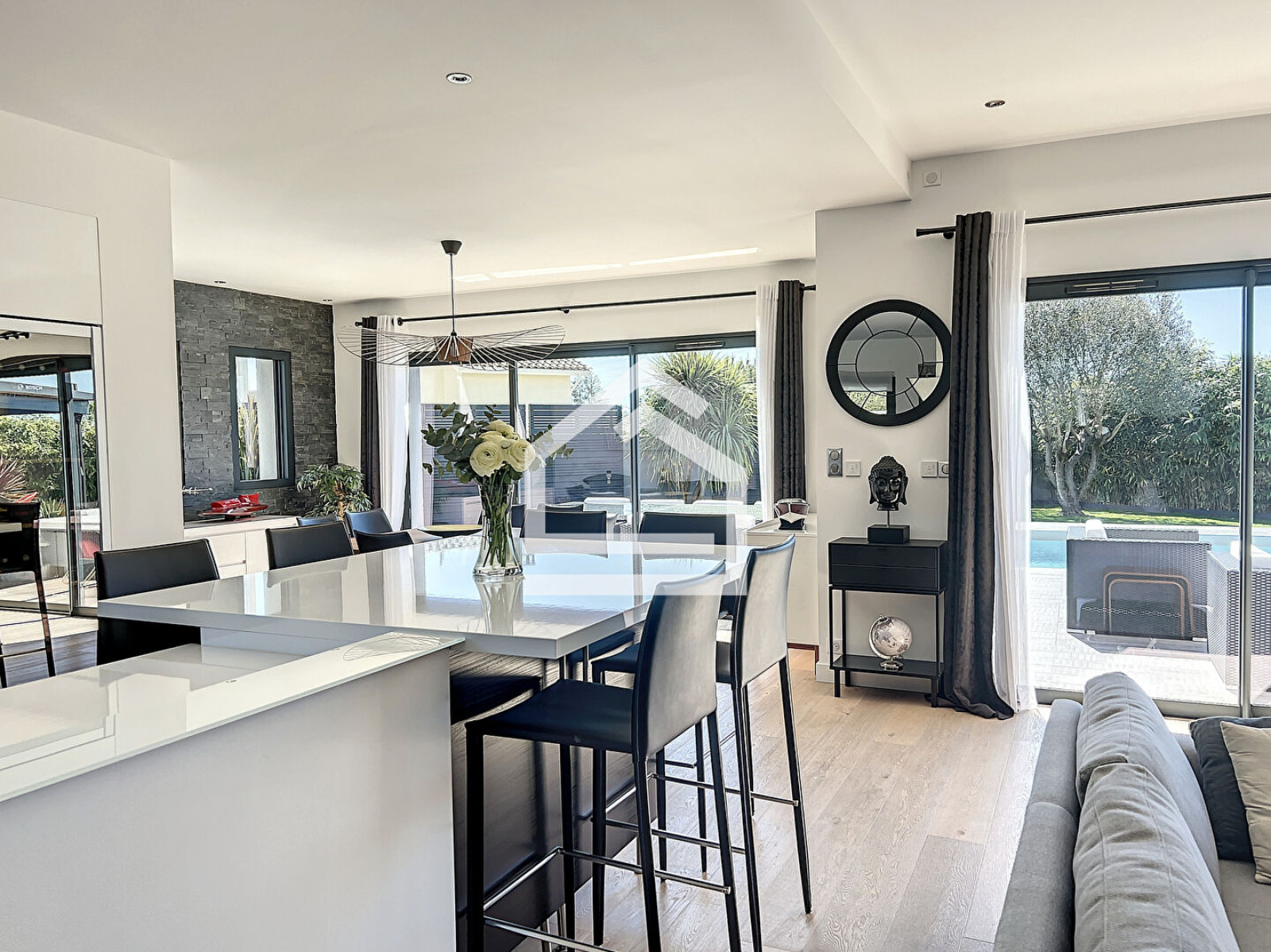 L'Agence Cadre d'Envies vous présente une magnifique villa d'environ 167 m2 construite en 2015 sur une parcelle d'environ 1037 m2. Proche des commodités, écoles et transports, l'emplacement est idéal pour faire toutes vos activités à pieds. La villa propose une spacieuse entrée avec des placards et un WC avec lave mains et fenêtre. Vous accéderez à la pièce de vie par une porte à galandage. Cet espace très lumineux se compose d'un salon, d'une salle à manger et d'une cuisine ouverte aménagée et équipée. Les volumes sont très agréables, et les prestations sont de qualité. Vous serez séduits par le parquet en chêne qui apporte du caractère et de la chaleur à cette villa contemporaine. De la cuisine, vous accédez à la buanderie et le cellier avec point d'eau et fenêtre pour ensuite arriver dans le garage qui dispose de nombreux placards. Au rez de chaussée, vous disposez également d'une grande suite parentale avec un spacieux dressing, une chambre avec vue sur la terrasse et la piscine, et une salle de bains avec baignoire, WC, douche, double vasque et fenêtre. A l'étage vous profiterez de trois chambres dont deux avec placards et une troisième idéale pour un bureau ou une chambre d'ami, d'un WC et d'une salle d'eau avec douche à l'italienne, double vasque et fenêtre. Les prestations sont de grande qualité et la villa est sécurisée. Le chauffage au sol à chaque niveau ainsi que la climatisation réversible vous apporteront un confort optimal tout en proposant des coûts énergétiques faibles. Le caractère irréprochable de cette villa vous permettra de vous y installer immédiatement. L'extérieur est agréable avec sa grande terrasse carrelée autour de la piscine 10 x 4 au sel, chauffée et sécurisée. Une deuxième terrasse en ipé permet de profiter de la pergola et de sa cheminée d'extérieur. Vous apprécierez également l'utilisation des stores bannes lors des grandes chaleurs. Le jardin paysagé est harmonieux et parfaitement conçu pour mettre en valeur l'esthétique tout en facilitant l'entretien. Vous bénéficiez également d'un deuxième garage avec de nombreux rangements. Cette villa est un bien rare sur le secteur. Honoraires vendeurs Les informations sur les risques auxquels ce bien est exposé sont disponibles sur demande ou sur le site Géorisques : www.georisques.gouv.fr Contact : Karine au 06.47.02.30.72