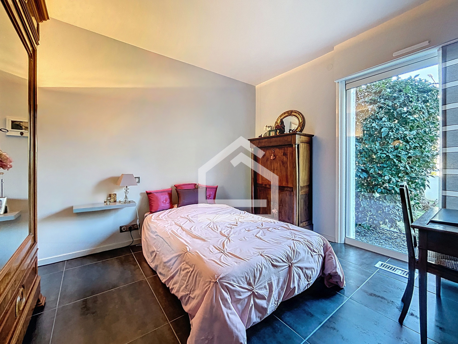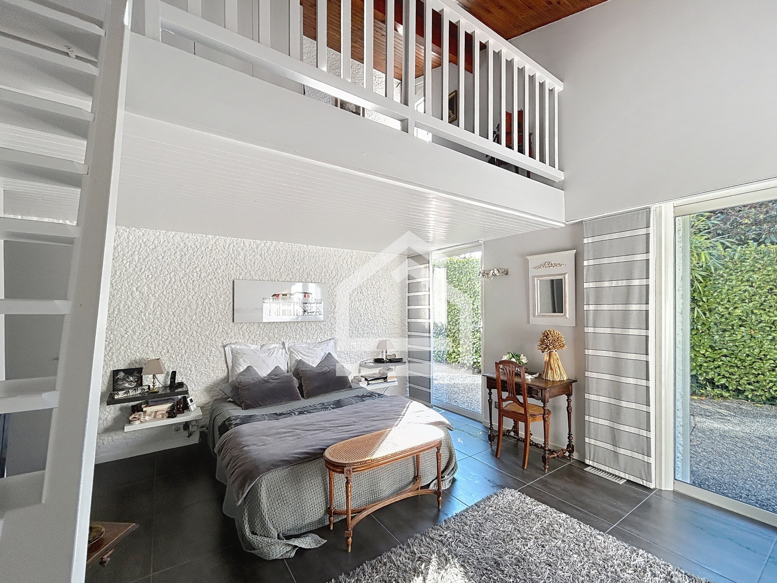 Le rez-de-chaussée accueille deux chambres, dont une avec mezzanine aménagée en dressing sur mesure pouvant être utilisée espace bureau, ainsi que deux salles d'eau.