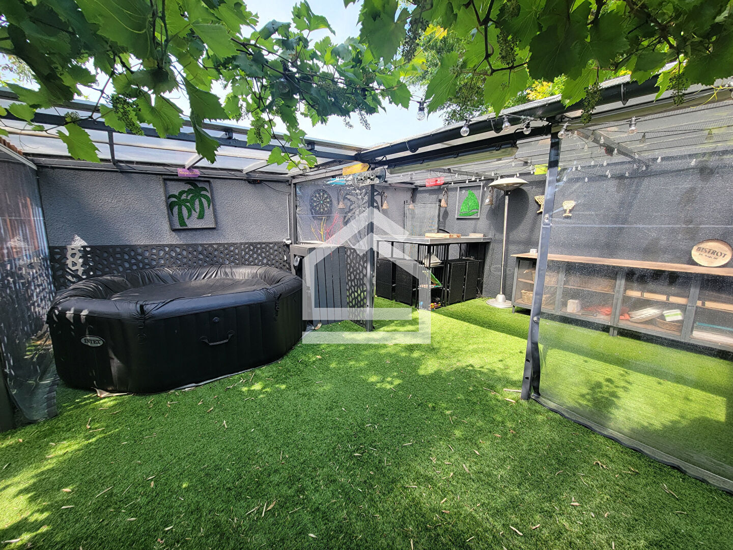 L'agence Cadre d'Envies Mérignac est fière de vous présenter cette maison entièrement rénovée, idéalement située dans une impasse au centre-ville. Vous serez immédiatement séduit par la qualité des prestations et le charme de cette maison de plain-pied, lumineuse et accueillante. D'une surface de 115 m², cette maison offre un vaste espace de vie de plus de 50 m² comprenant un salon, un séjour et une cuisine ouverte avec îlot central. Ces espaces, baignés de lumière, sont parfaits pour recevoir vos proches et profiter de moments de convivialité. La maison dispose de deux chambres lumineuses, d'un bureau idéal pour le télétravail ou toute autre utilisation polyvalente, ainsi que d'une salle de bain moderne et fonctionnelle. La véranda, inondée de lumière naturelle, offre une vue apaisante sur le jardin. Le jardin sans vis-à-vis est un véritable havre de paix, où vous pourrez vous détendre en toute tranquillité. Il comprend un potager, un espace repas convivial, ainsi qu'un atelier polyvalent pouvant servir pour une activité artistique, du stockage ou comme cuisine d'été. Un jacuzzi 6/8 places complète ce cadre idyllique, idéal pour la détente et les moments de convivialité. Cette maison est également extrêmement pratique, avec des rénovations récentes de moins de 10 ans, assurant un confort optimal et des prestations de qualité. Vous pourrez profiter du calme tout en restant à seulement 5 minutes à pied des bus, du tram, des écoles et des commodités. Venez découvrir cette maison exceptionnelle et laissez-vous charmer par son atmosphère unique et ses prestations haut de gamme. Contact : Karen au 07 45 26 44 91 Les informations sur les risques auxquels ce bien est exposé sont disponibles sur demande ou sur le site Géorisques : www.georisques.gouv.fr **Honoraires à la charge des acquéreurs de 17 600€ soit un prix net vendeur de 440 000€