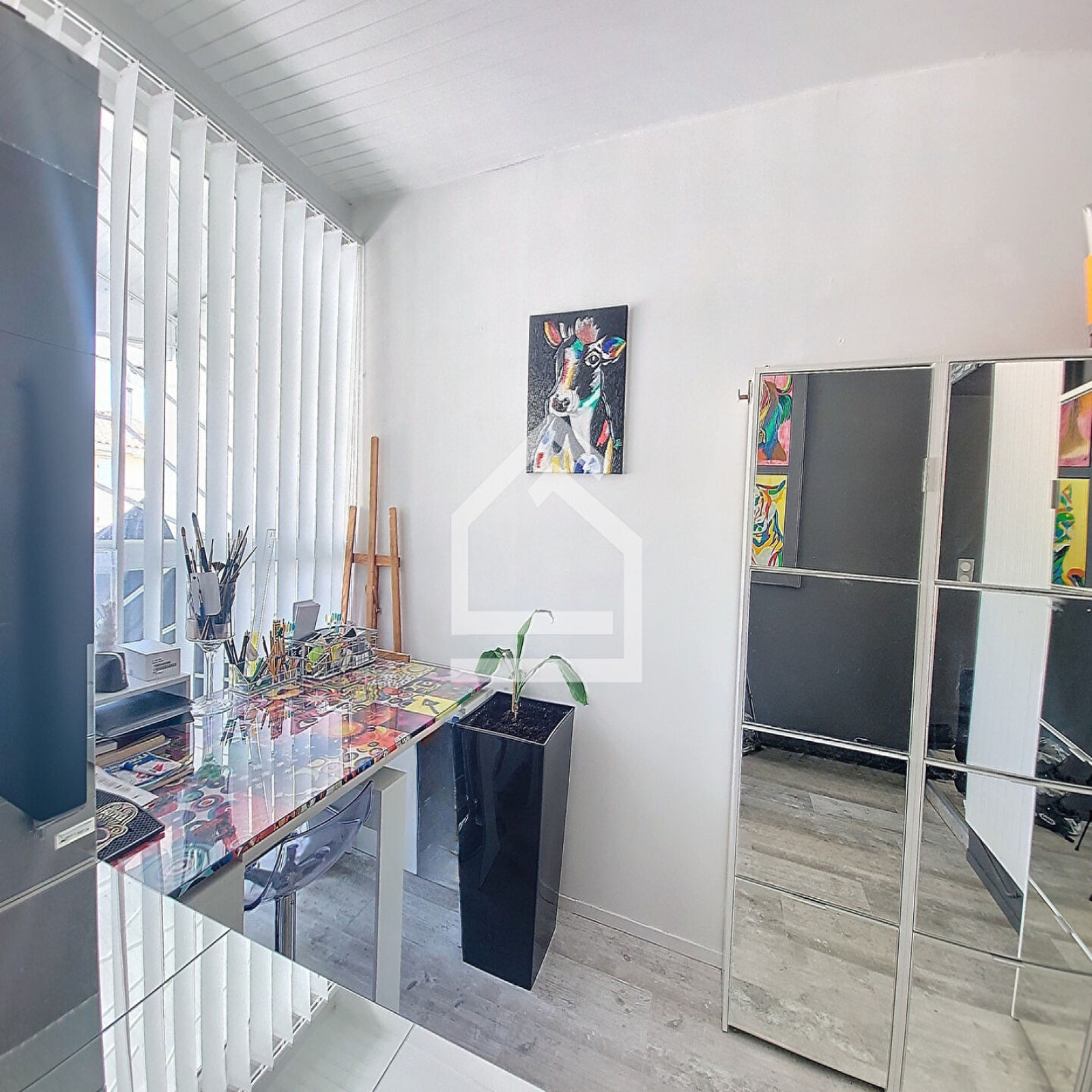 La maison dispose de deux chambres lumineuses, d'un bureau idéal pour le télétravail ou toute autre utilisation polyvalente, ainsi que d'une salle de bain moderne et fonctionnelle.