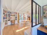 Le salon séjour, récemment rénové, est un grand espace lumineux, parfait pour accueillir toute la famille. La triple exposition apporte une belle lumière naturelle à toute la pièce.