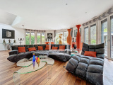 La partie jour s’articule autour d’une spectaculaire pièce de réception d’environ 120 m², baignée de lumière naturelle grâce à de larges ouvertures sur l’extérieur. La cuisine semi-ouverte, subtilement intégrée à l’ensemble, est entièrement équipée d’électroménager récent et se prolonge par une arrière-cuisine faisant office de buanderie, pensée pour allier discrétion et fonctionnalité.
