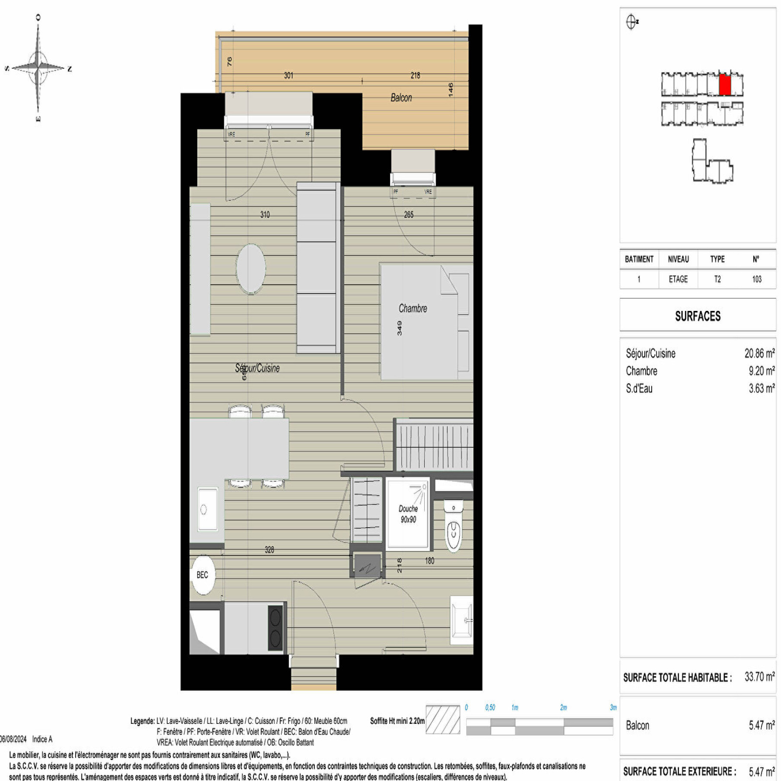 La pièce à vivre et la chambre de cet appartement 2 pièces sont orientées Ouest, vous offrant un ensoleillement optimal tout au long de la journée. Un balcon d'environ 5,5m2 vous offre une vue dégagée sur la forêt.