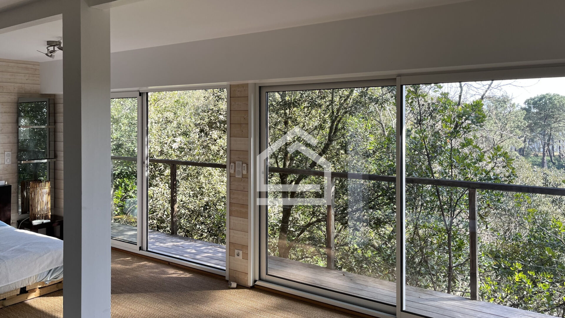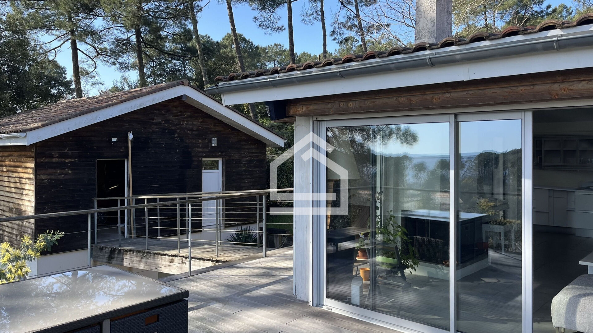 L'agence CADRE D'ENVIES Lacs et Océan vous présente cette belle maison contemporaine d'environ 150m2 idéalement située sur les hauteurs du Lac, ce qui lui confère une vue à couper le souffle !