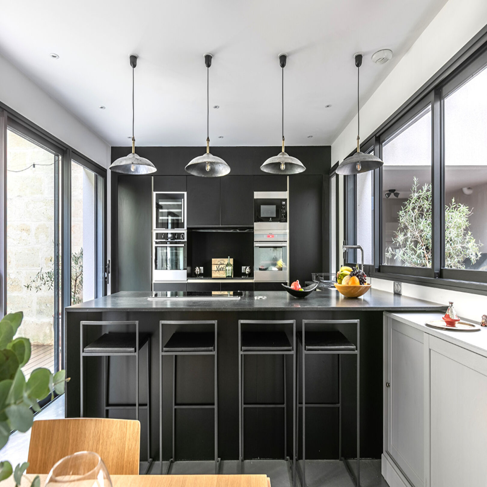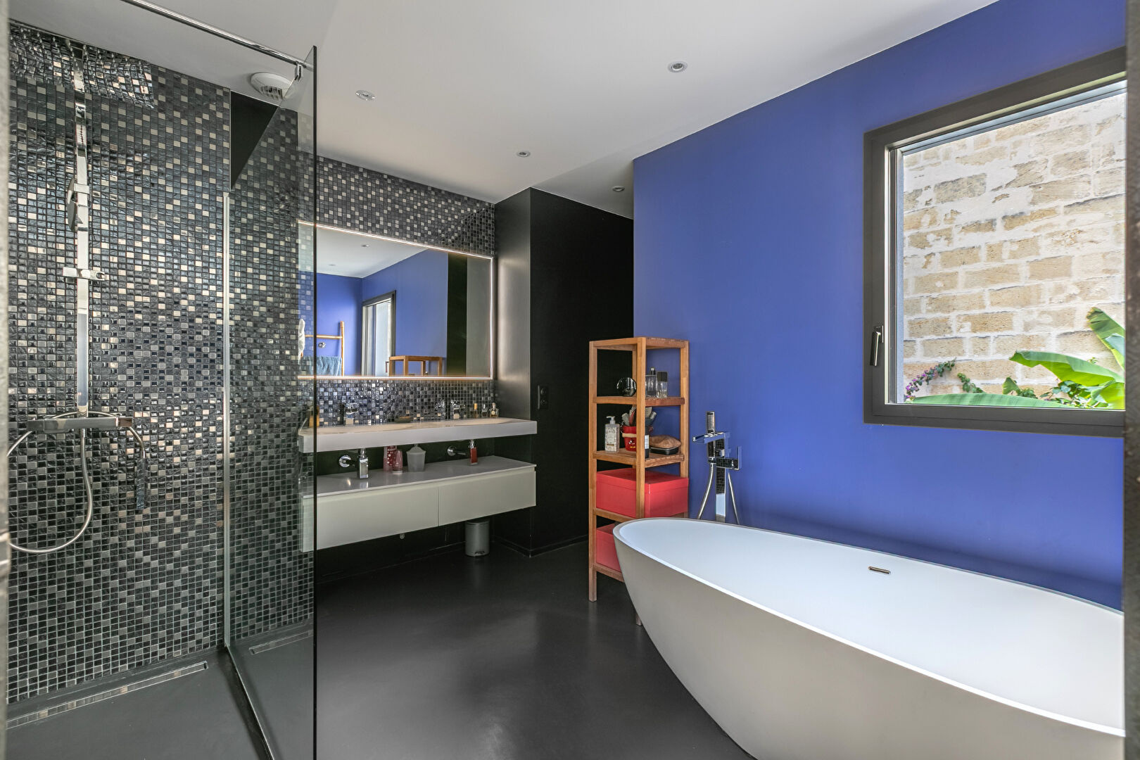 Ce loft d'environ 215 m2 se distingue par son caractère atypique et son style résolument contemporain mélangeant béton ciré, parquets et terrasses en bois exotique. Il est baigné de lumière traversante grâce à deux extérieurs qui le bordent.