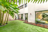 Tout d'abord, une généreuse entrée amène à un premier patio de 35 m2 permettant d'accéder à une spacieuse pièce de vie de presque 80 m2, comprenant un espace bureau ou salon télé, un séjour / salle à manger et une cuisine parfaitement équipée aux lignes épurées. Le tout s'ouvre par de larges baies vitrées sur un deuxième bel extérieur, facile d'entretien, agrémenté d'un bougainvillier et d'un dépaysant bananier. Un jacuzzi pourrait facilement y trouver sa place. Une grande buanderie faisant office de cave à vin et des toilettes séparées complètent ce niveau.