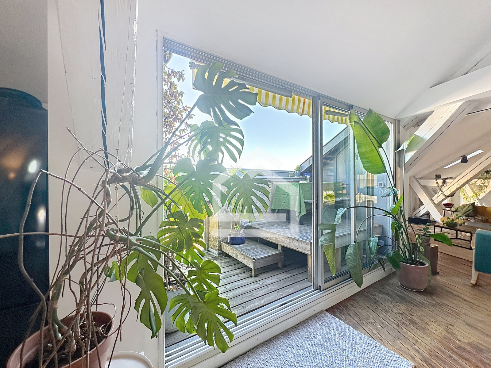 A l'extérieur, le loft révèle l'un de ses atouts les plus rares : une terrasse tropézienne offrant une vue dégagée sur la ville, parfaite pour les repas, les couchers de soleil ou simplement profier de l'instant.