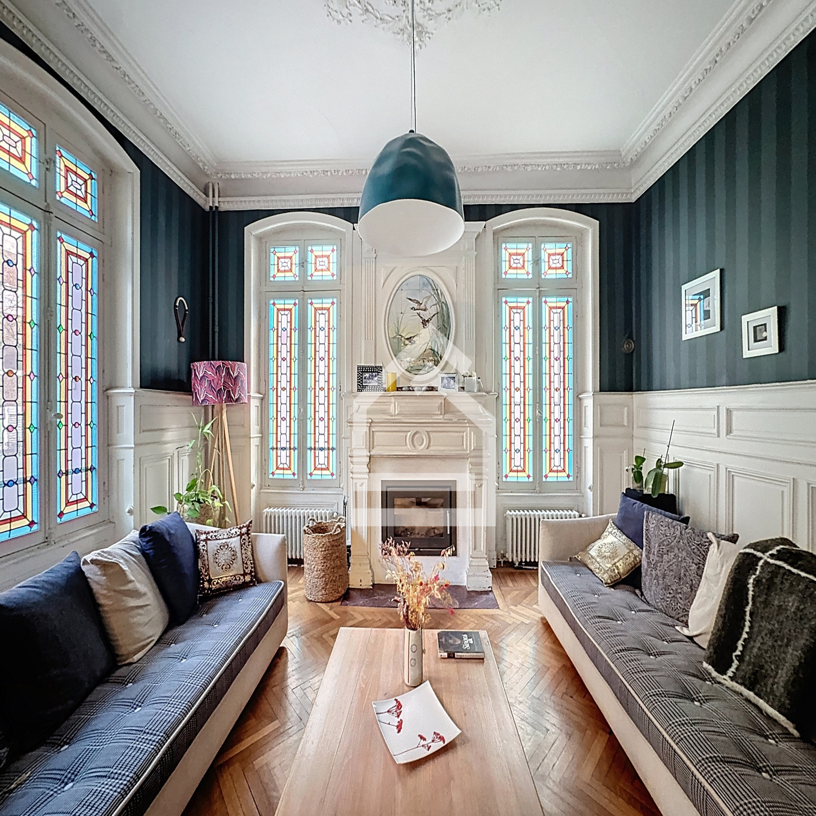 Ce maison de caractère comprend une entrée en carreaux de ciments d'époque, un salon baigné de lumière orné de vitraux d'origine, une salle à manger conviviale avec son bow window, une bibliothèque propice à l'évasion et une cuisine séparée.