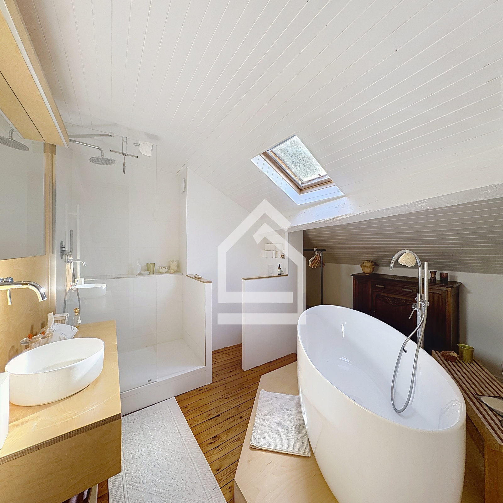 Au premier étage, une vaste suite parentale, avec dressing et salle d'eau privée, accompagnée de 2 chambres, d'une salle de bains. et d'un espace buanderie
