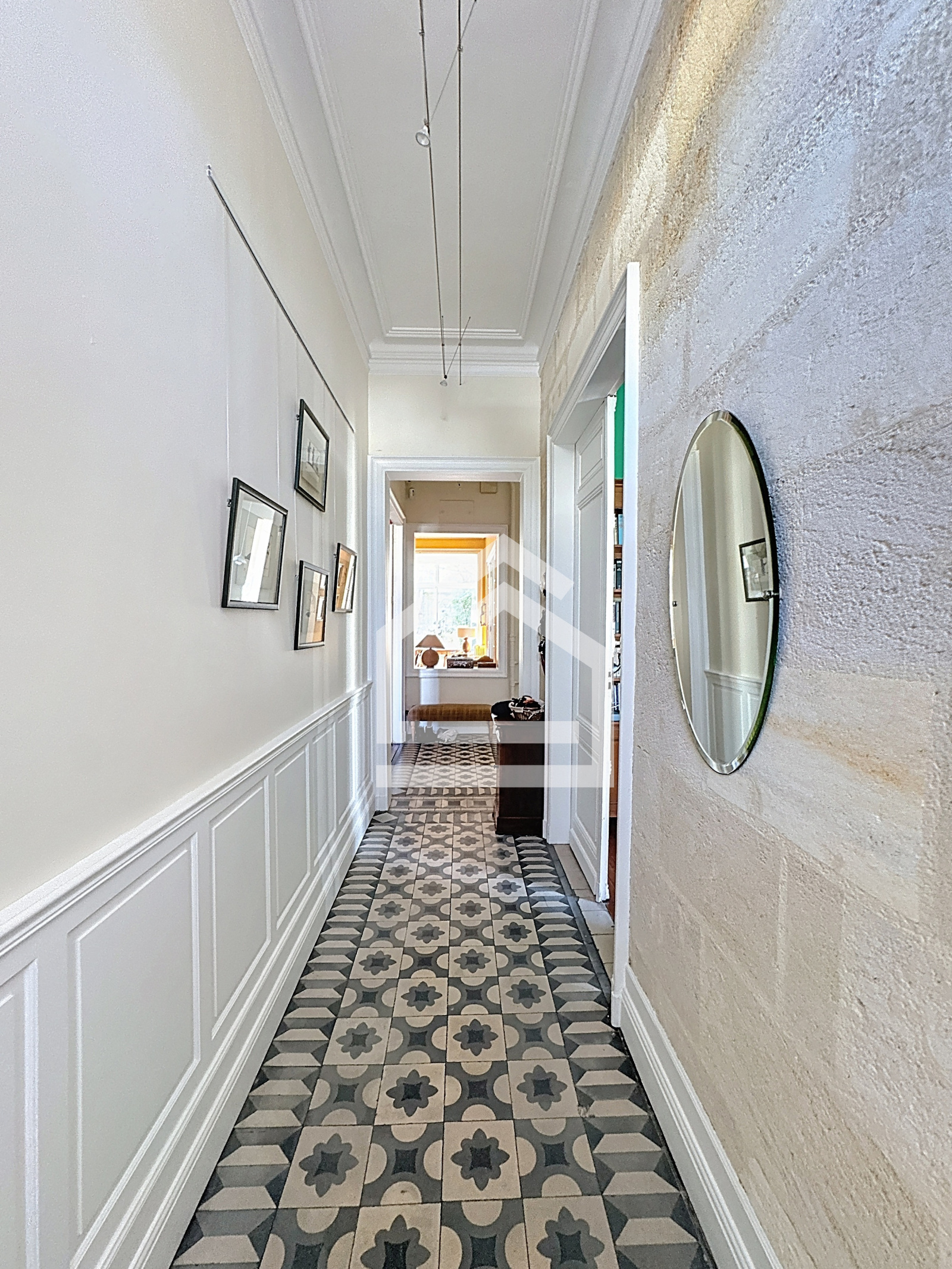 Construite en 1893, elle comprend une belle entrée avec carreaux de ciments, un bureau, un double salon aux volumes généreux, avec cheminée fonctionnelle, une cuisine fonctionnelle prolongée par une salle à manger baignée de lumière.