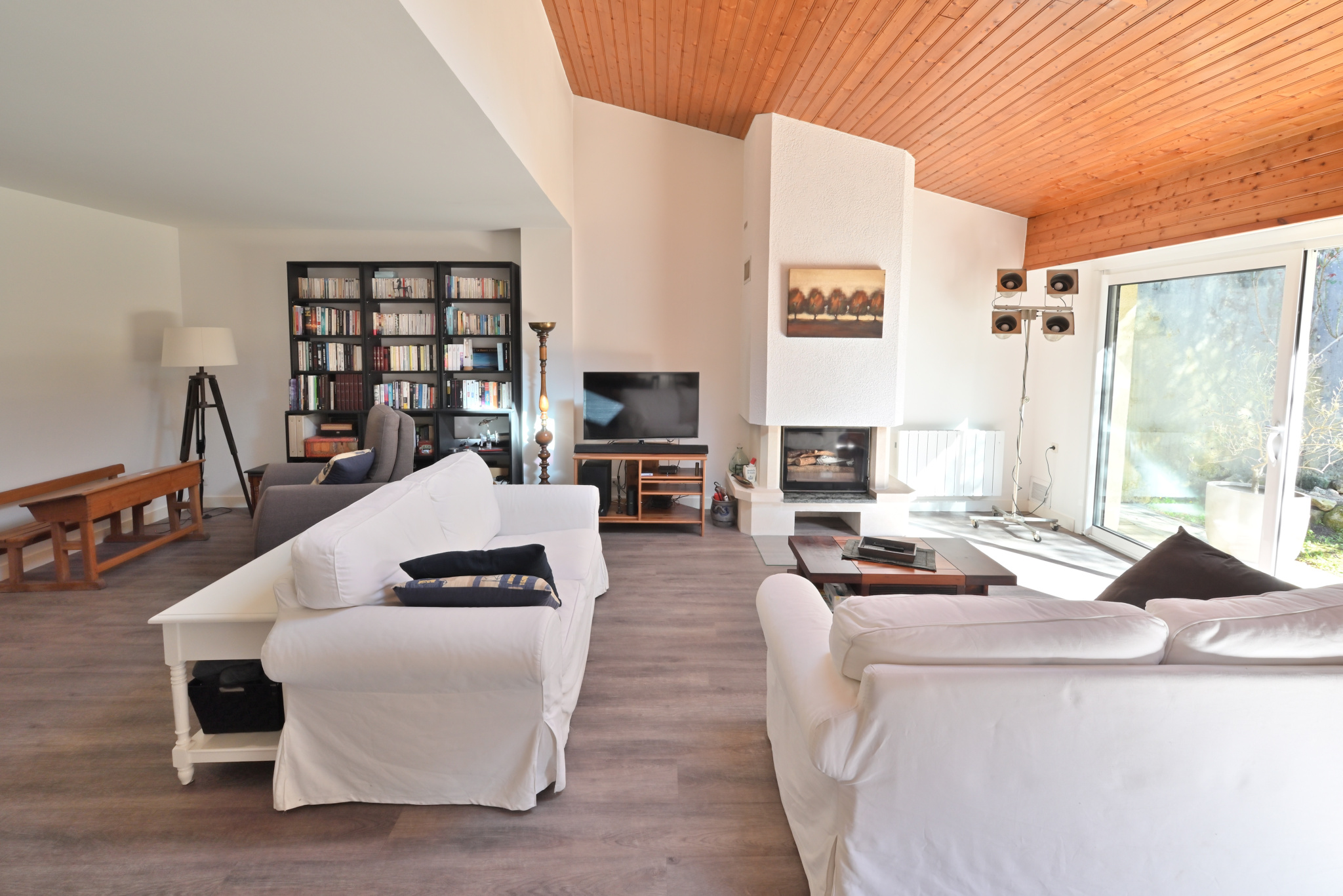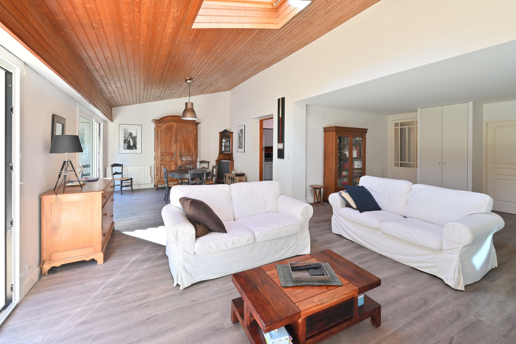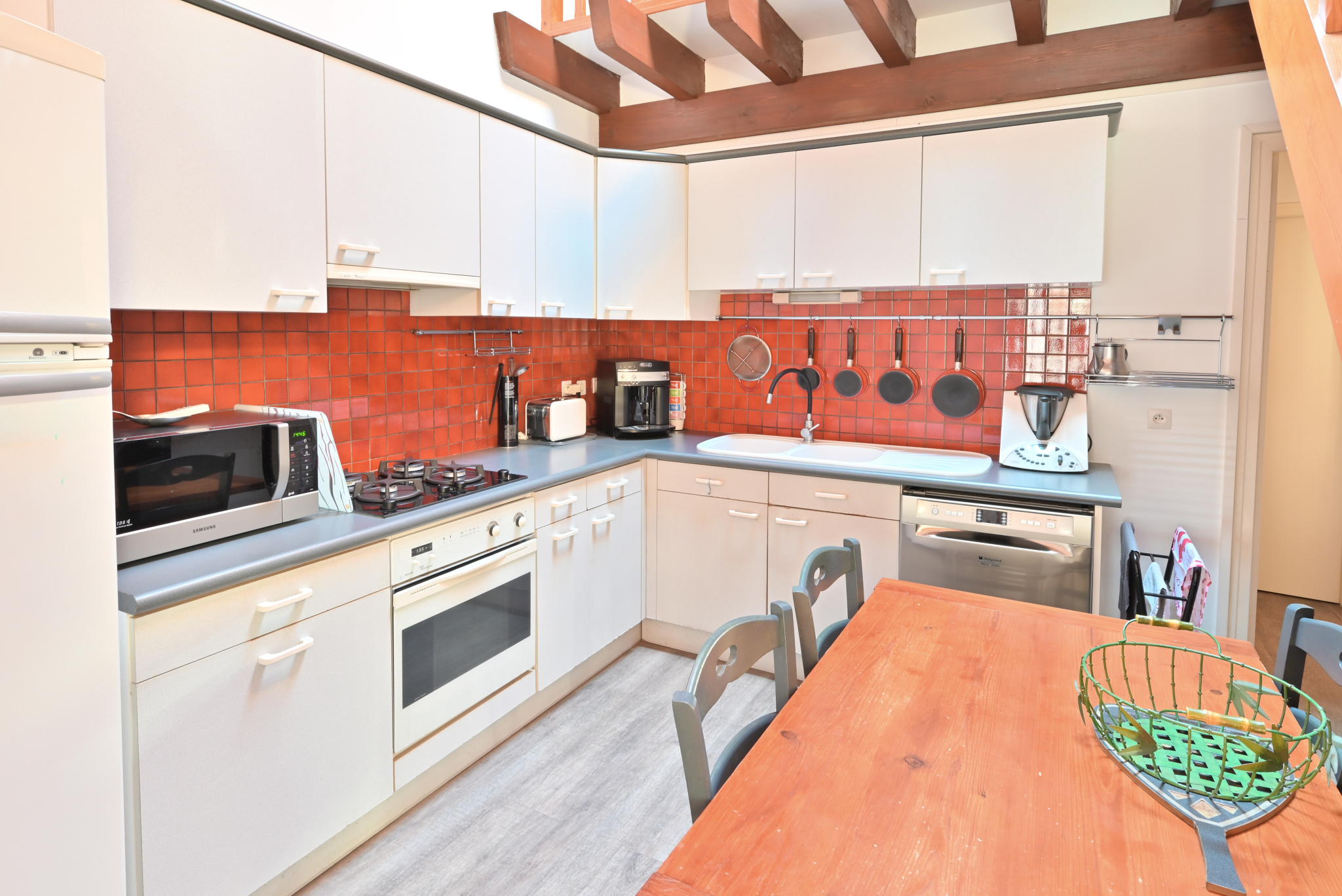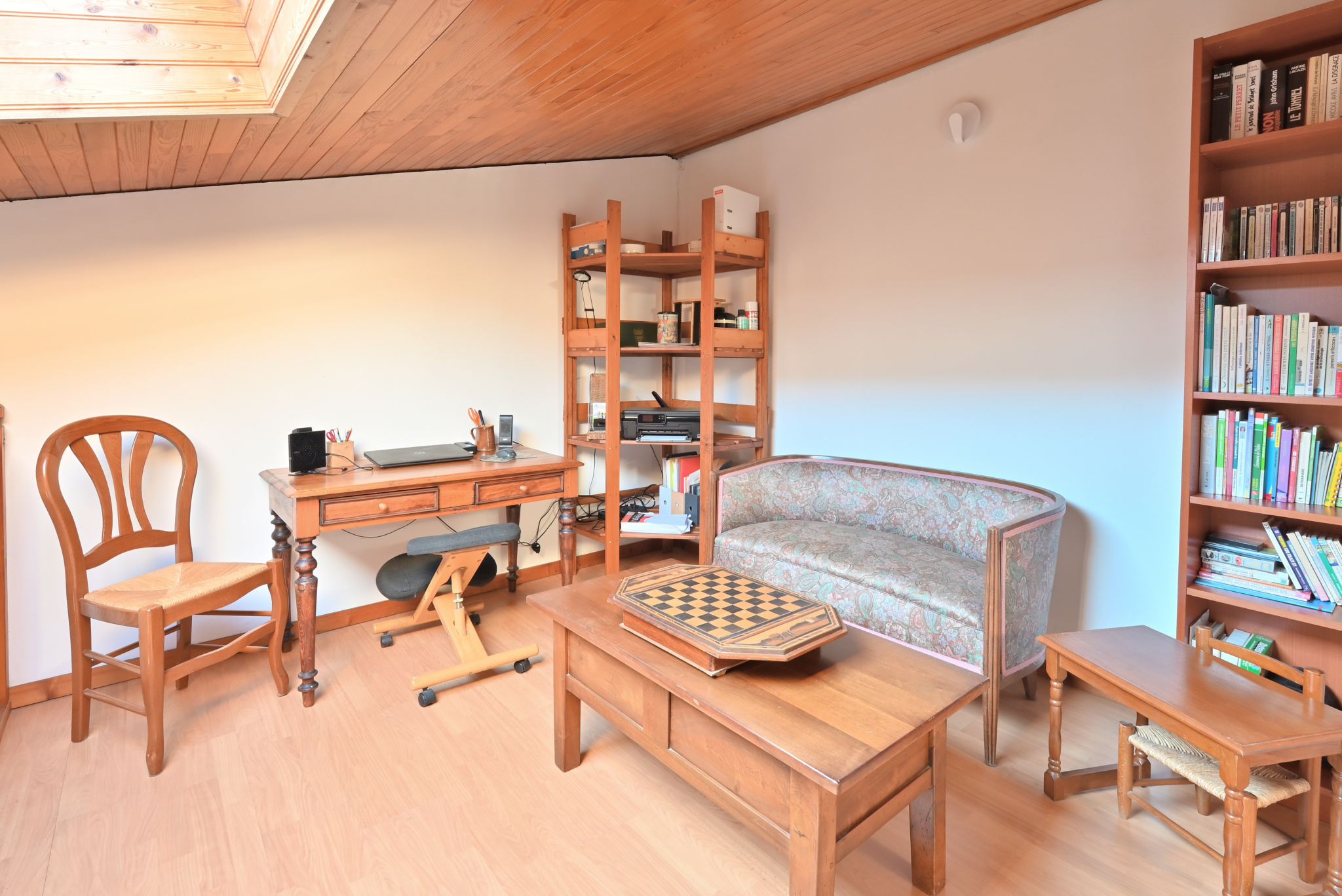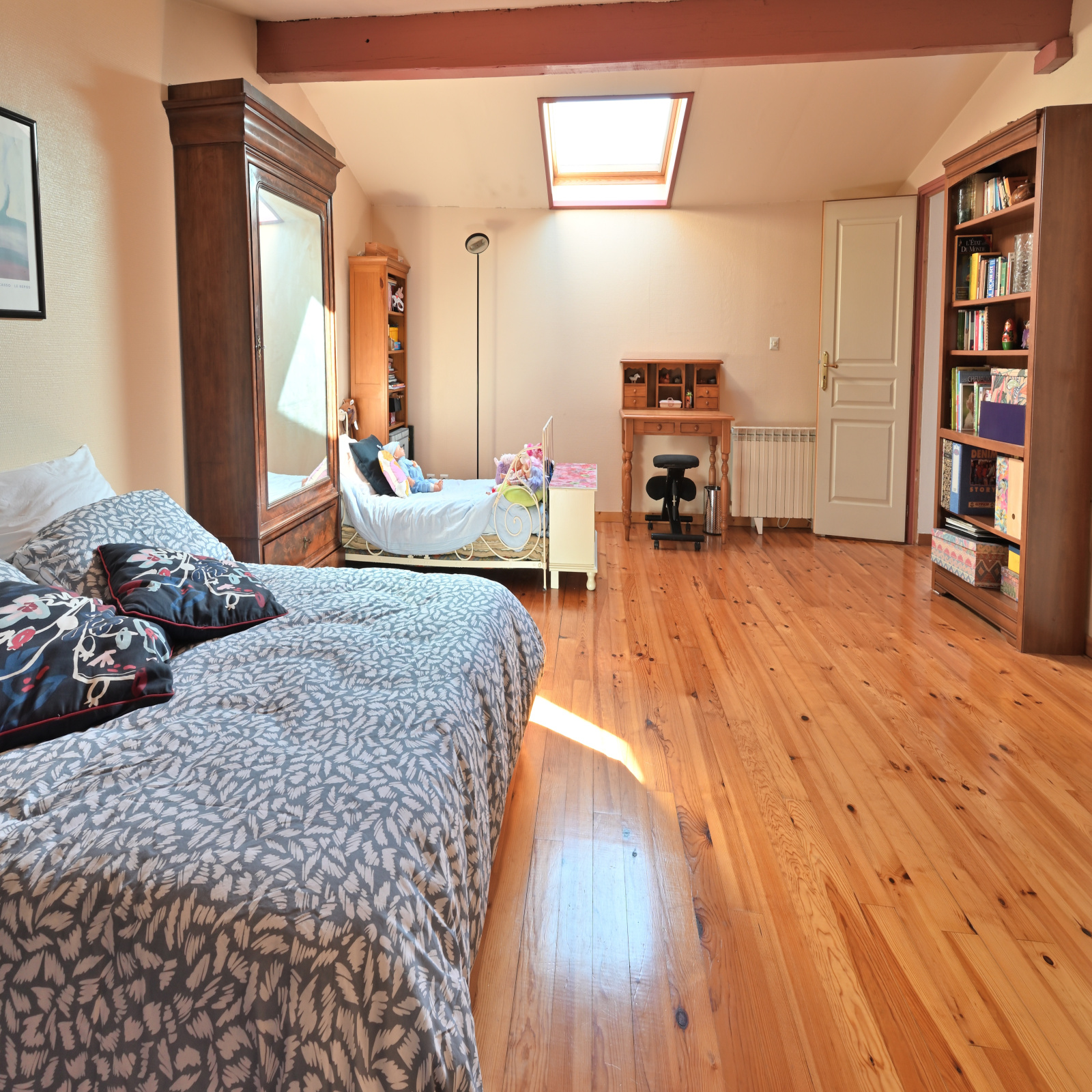 À L'étage vous trouverez une mezzanine faisant office de bureau, une immense chambre de 24 m2 et un grenier.