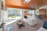 Très bien entretenue, la maison dispose au rez-de-chaussée d'une entrée, de 2 grandes chambres ( 14,8 et 14 m2), d'une salle d'eau, d'une buanderie et d'une cuisine équipée semi ouverte sur la très belle pièce de vie de 55 m2 avec cheminée à insert. Belle luminosité sur l'espace de vie grâce à l'exposition Sud-Est, aux 2 baies vitrées et au Vélux.