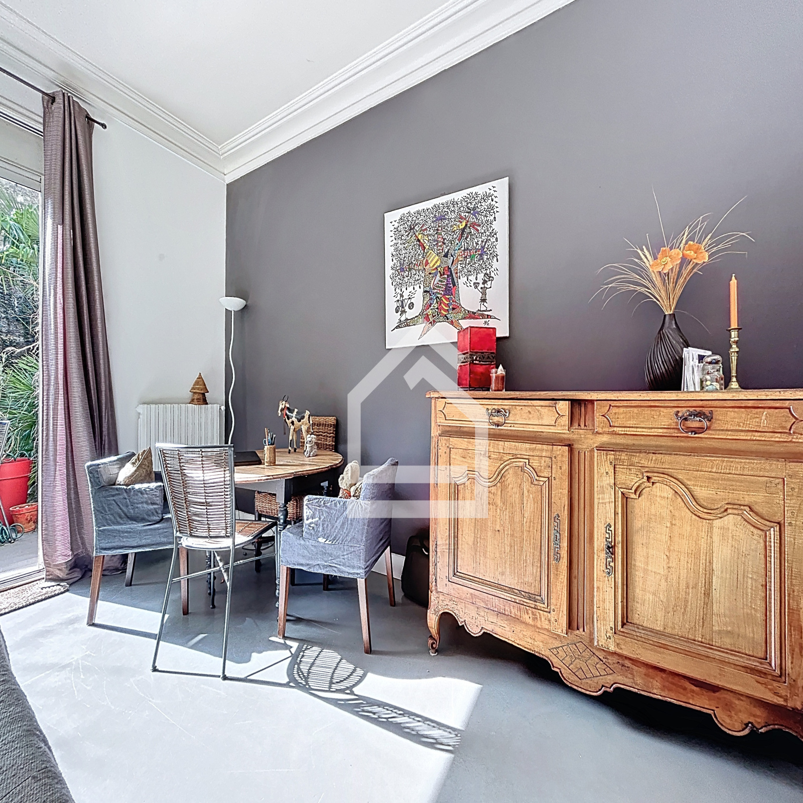 Derrière sa façade typiquement bordelaise, cette maison révèle le charme intemporel des prestations anciennes sublimé par une atmosphère chaleureuse et lumineuse.