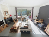 Le rez-de-chaussée s’ouvre sur un vaste salon-séjour baigné de lumière grâce à sa large baie vitrée prolongeant naturellement l’espace vers un jardin intimiste, à l’abri des regards — un véritable cocon en cœur de ville, rare sur le secteur.