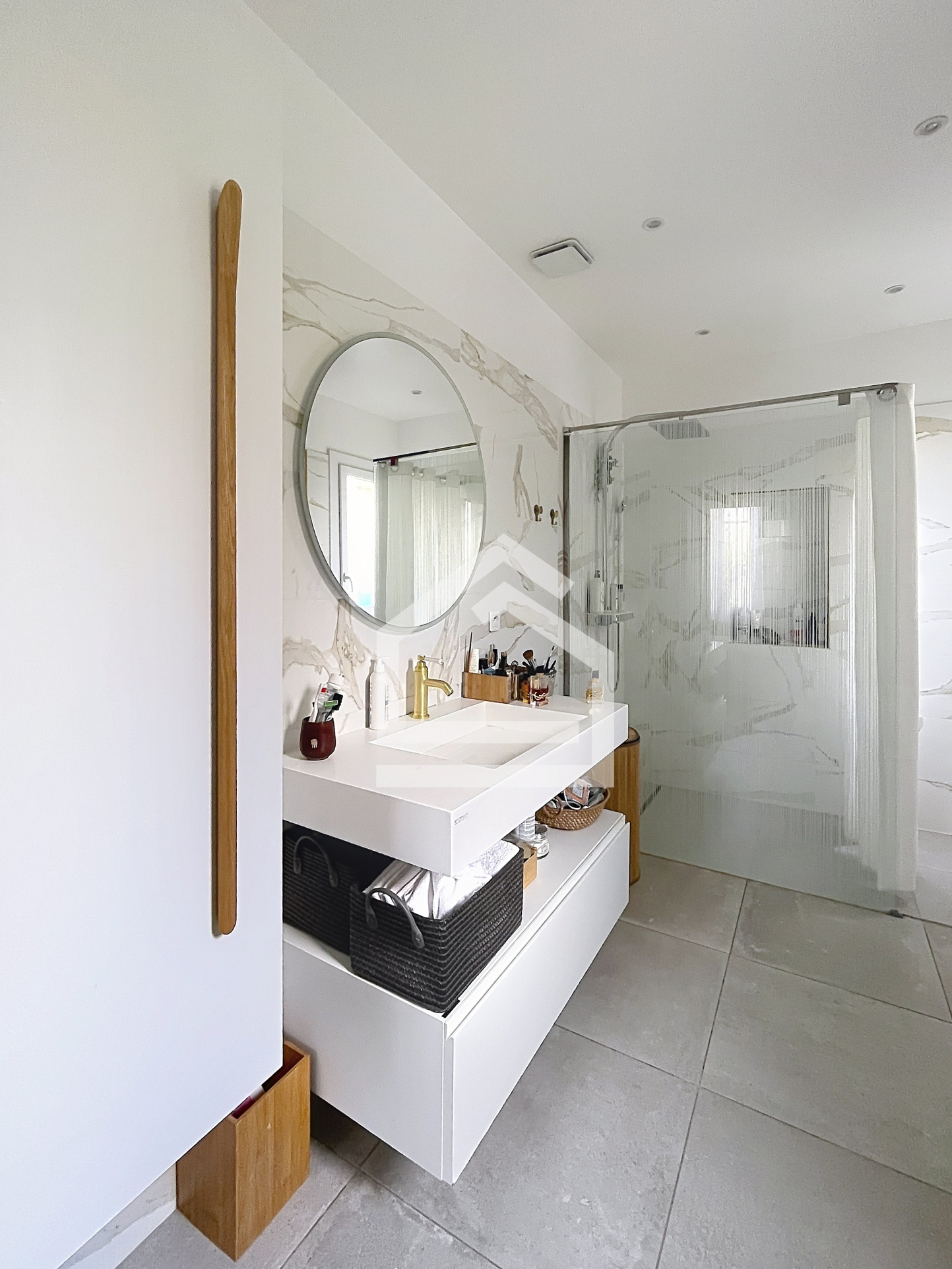 Le rez-de-chaussée accueille également deux chambres de plain-pied, dont une confortable suite disposant de sa salle d’eau, offrant un agencement parfaitement adapté à une vie familiale.