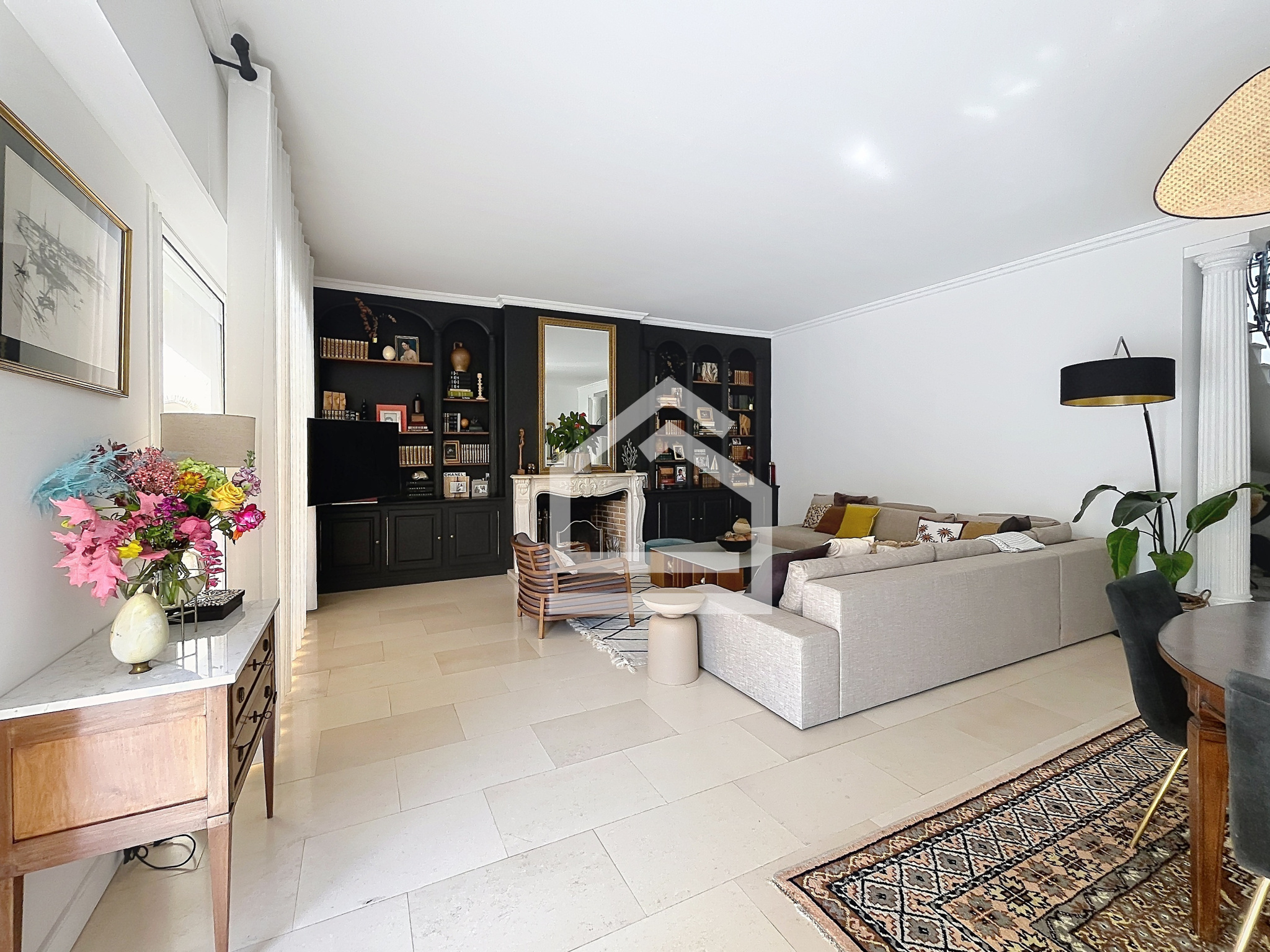 Agrémenté d’une cheminée, ce vaste séjour offre un cadre idéal pour recevoir et partager des instants privilégiés en famille ou entre amis.