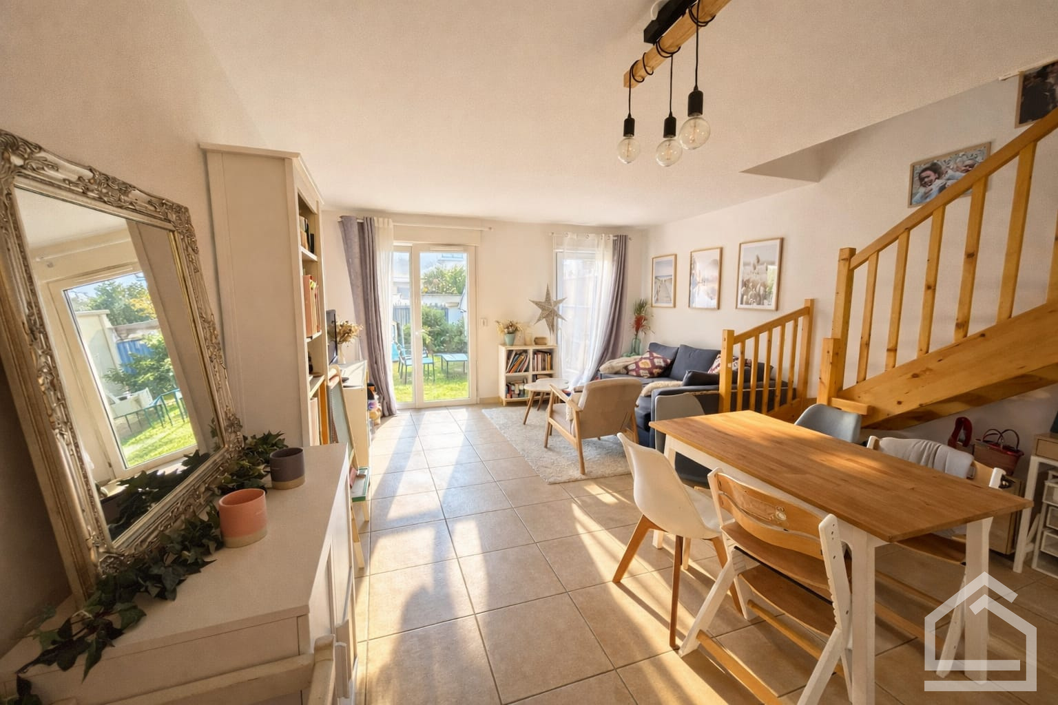 Les espaces intérieurs sont très bien pensés pour une vie en famille ou entre amis. Le salon ouvert sur la cuisine US est spacieux avec une belle hauteur sous plafond, les trois chambres sont confortables et pratiques avec leurs grands espaces de rangement.