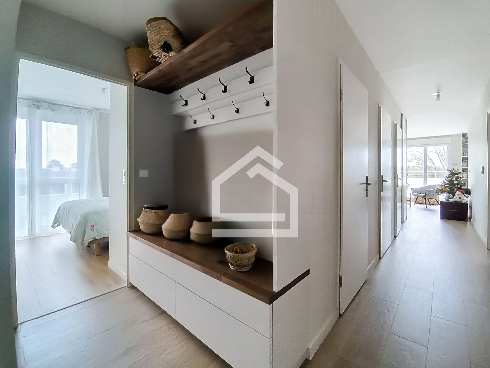 L'entrée, spacieuse et fonctionnelle, est aménagée de placards intégrés. Elle s'ouvre sur une vaste pièce de vie de plus de 50 m², baignée de lumière, comprenant une cuisine moderne entièrement aménagée et équipée. De larges ouvertures donnent accès à une terrasse d'environ 35 m², idéale pour profiter pleinement des beaux jours.