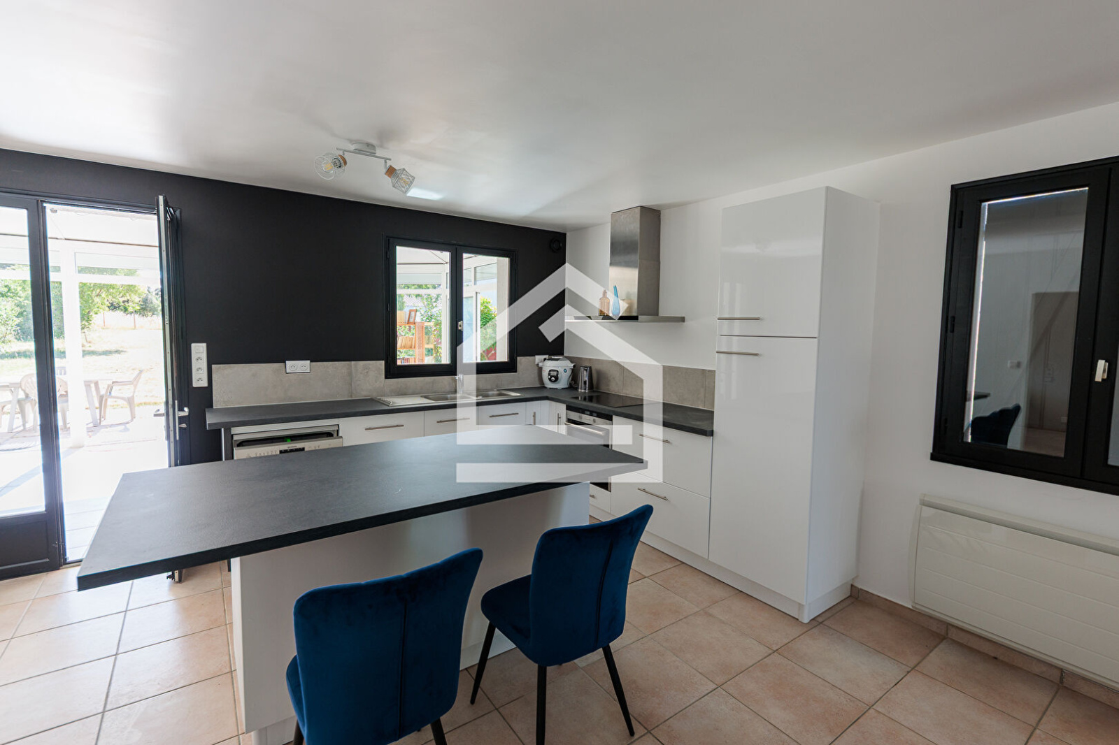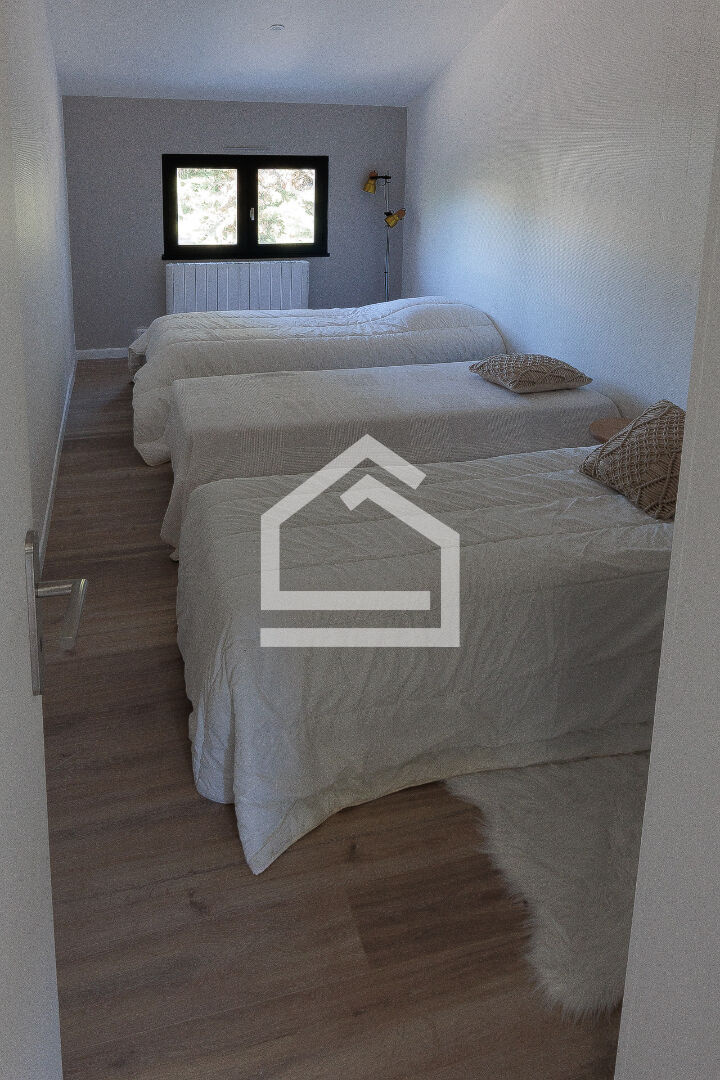 Construite en 1986 et entièrement repensée, elle offre la possibilité d'une vie de plain-pied. La spacieuse et lumineuse pièce de vie, agrémentée d'une cheminée et de la climatisation, s'ouvre sur une véranda chauffée et climatisée, offrant une vue imprenable sur la terrasse et le jardin. La cuisine ouverte, aménagée et équipée, invite à la convivialité.
