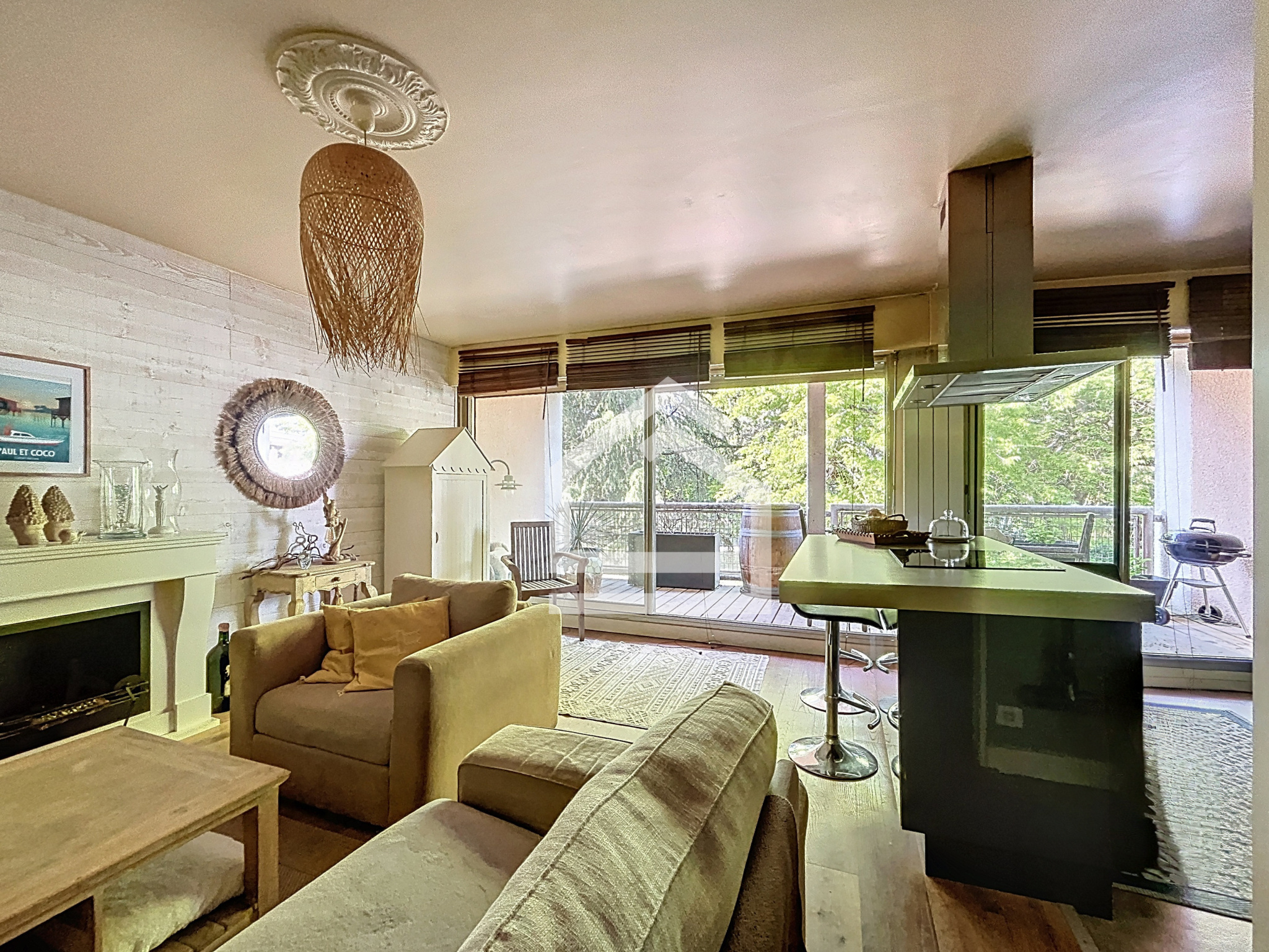 Dès l’entrée, vous serez immédiatement séduit par ses beaux volumes, sa luminosité et le calme environnant. Situé au premier étage, ce bien offre une vaste pièce de vie conviviale composée d’un salon-séjour avec cuisine ouverte, aménagée et équipée. De larges baies vitrées prolongent harmonieusement l’espace vers une agréable terrasse de 12 m², sans vis-à-vis, parfaitement arborée.