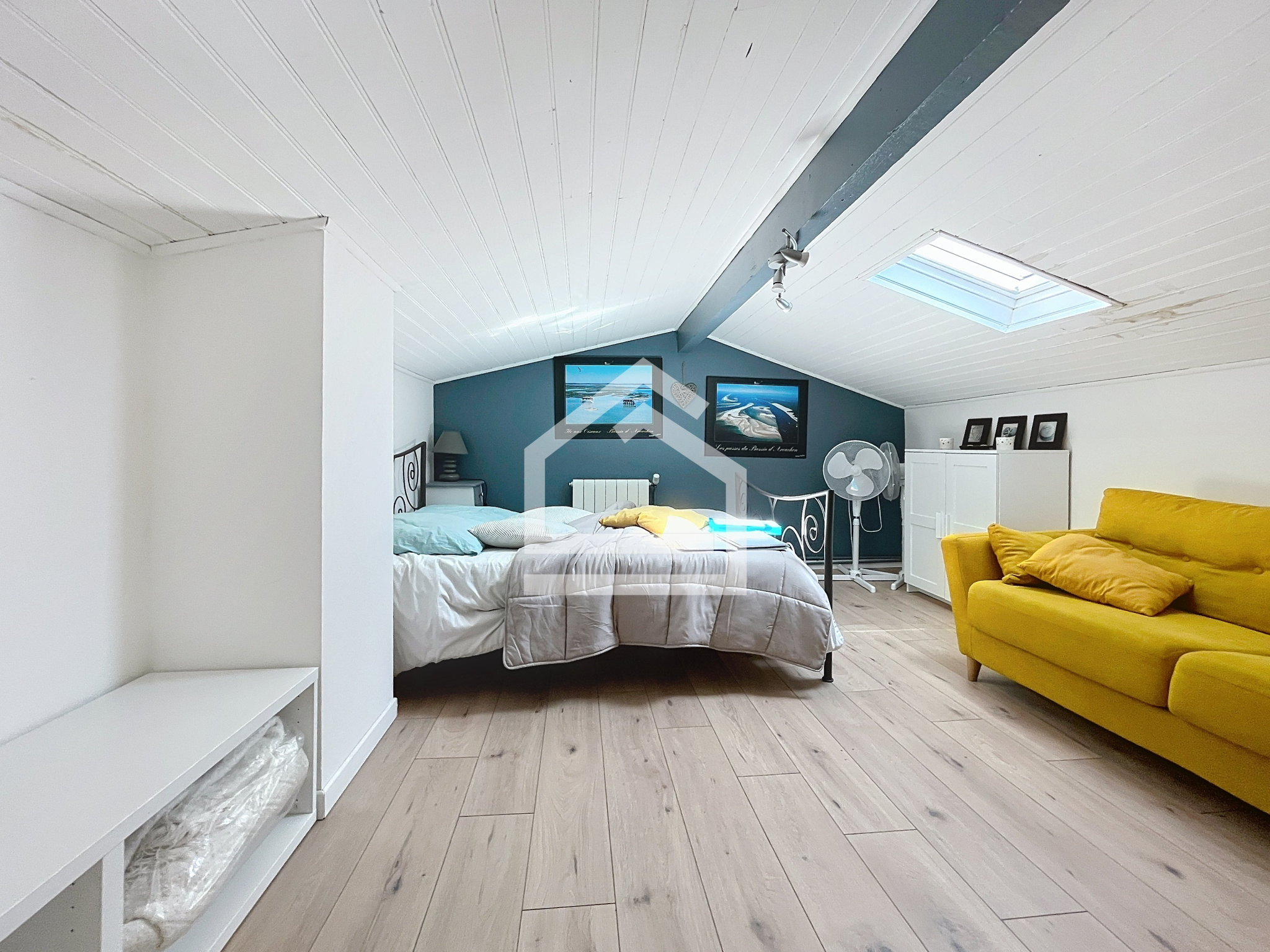 Au dessus du salon, une pièce de 15m² mansardée pourra faire office d'espace bureau ou de chambre.