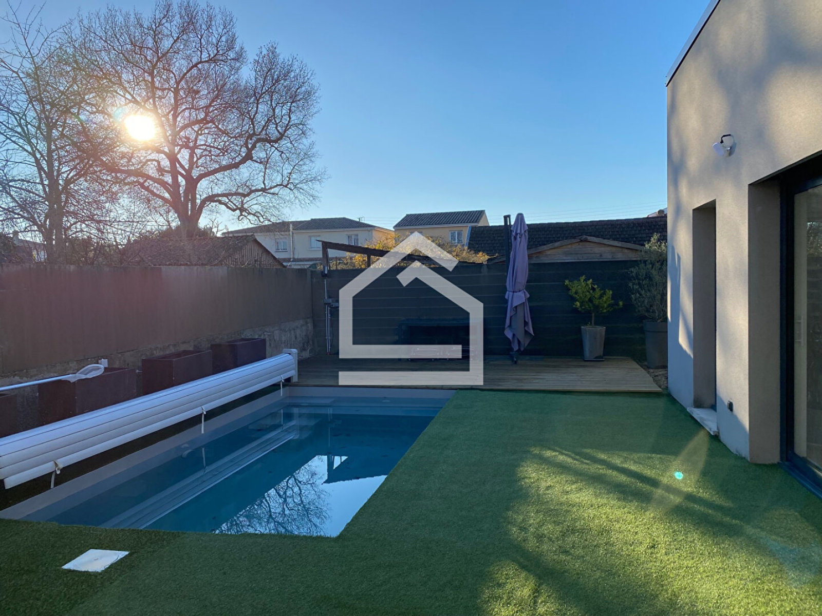 L'agence Cadre d'envies vous propose en exclusivité cette élégante demeure contemporaine située dans un secteur résidentiel prisé de Pessac, à proximité immédiate des commodités, des moyens de transport et des établissements scolaires. La maison de style contemporain et encore sous garantie décennale se distingue par ses finitions haut de gamme et son design moderne. Conçue par un architecte pour optimiser l'espace et la luminosité, elle offre un cadre de vie confortable et raffiné de plain pied. Au coeur de la maison, vous découvrirez un vaste espace de vie de 41 m², intégrant un salon et une cuisine équipée, le tout s'ouvrant sur un jardin doté d'une piscine et d'une terrasse exposée Sud-Ouest, ce qui est idéal pour les réceptions en plein air. La résidence se compose de trois chambres spacieuses, incluant une suite parentale avec salle d'eau privative, ainsi qu'une salle de bain additionnelle, offrant confort et intimité à chaque membre de la famille. Les atouts de ce bien d'exception incluent également un cellier, un garage aménageable en espace habitable, un système de chauffage par le sol, couplé à une climatisation centralisée, des menuiseries de haute qualité et une solution domotique intégrée pour une gestion facilitée du quotidien. Cette maison représente une opportunité rare d'acquérir une propriété clé en main dans un des quartiers convoités de Pessac. Nous vous invitons à prendre rendez-vous pour une visite exclusive et découvrir le cadre de vie exceptionnel qu'elle offre. Les informations sur les risques auxquels ce bien est exposé sont disponibles sur demande ou sur le site Géorisques : www.georisques.gouv.fr Contact : Karen au 07 45 26 44 91 **Honoraires à la charge du vendeur