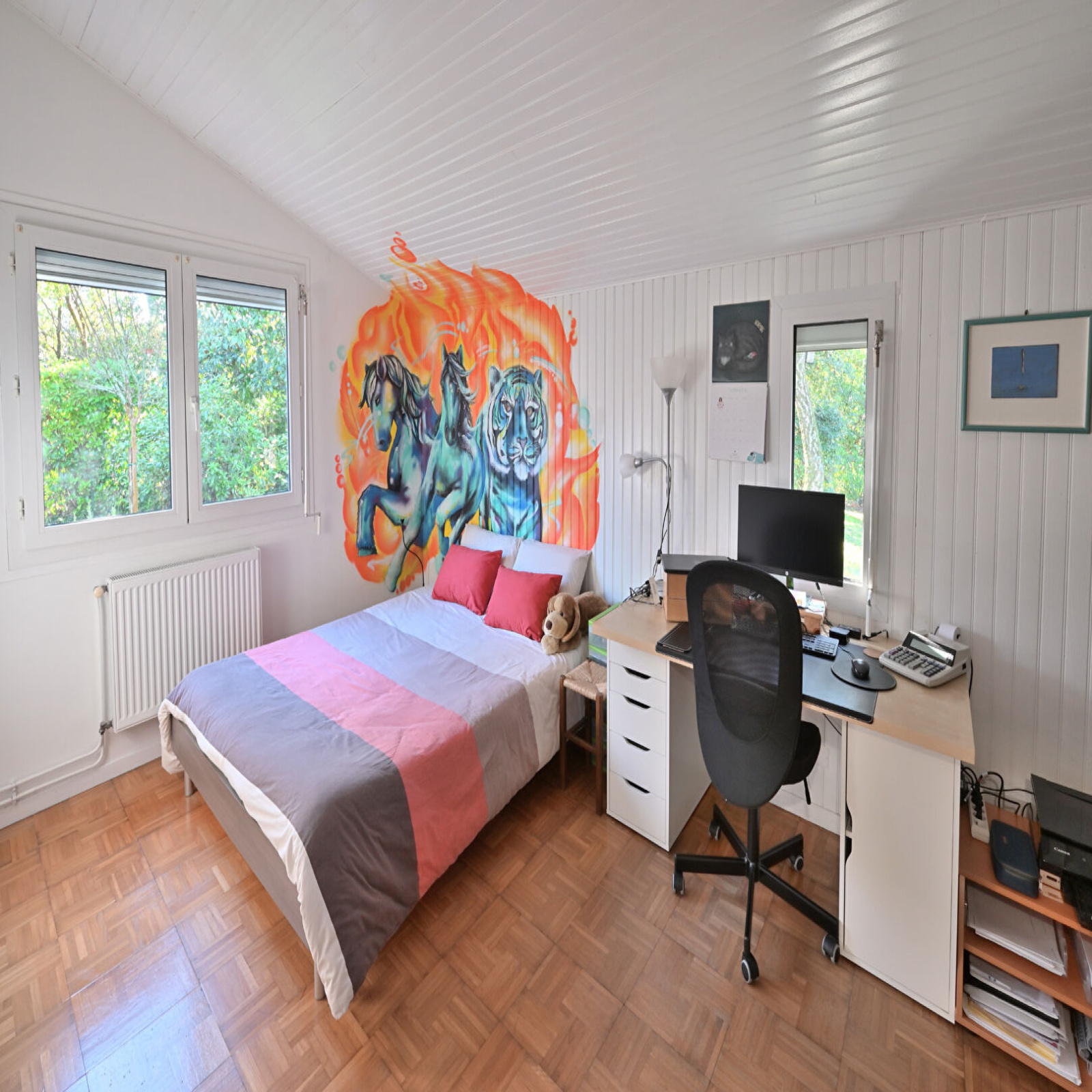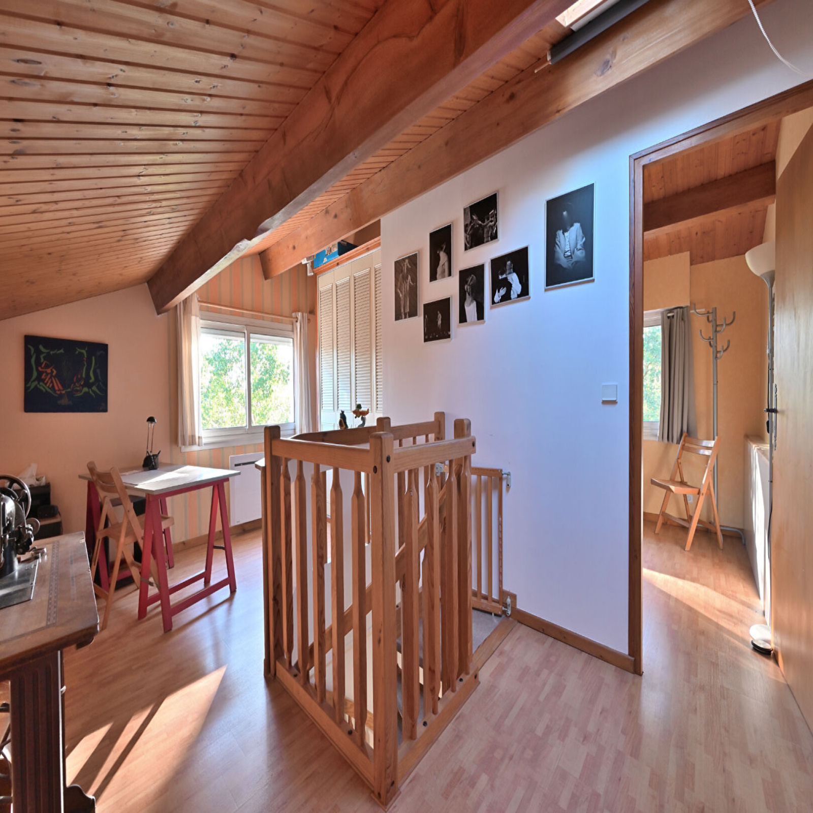 À l'étage, un pallier faisant office de bureau donne accès à une 5ème chambre.