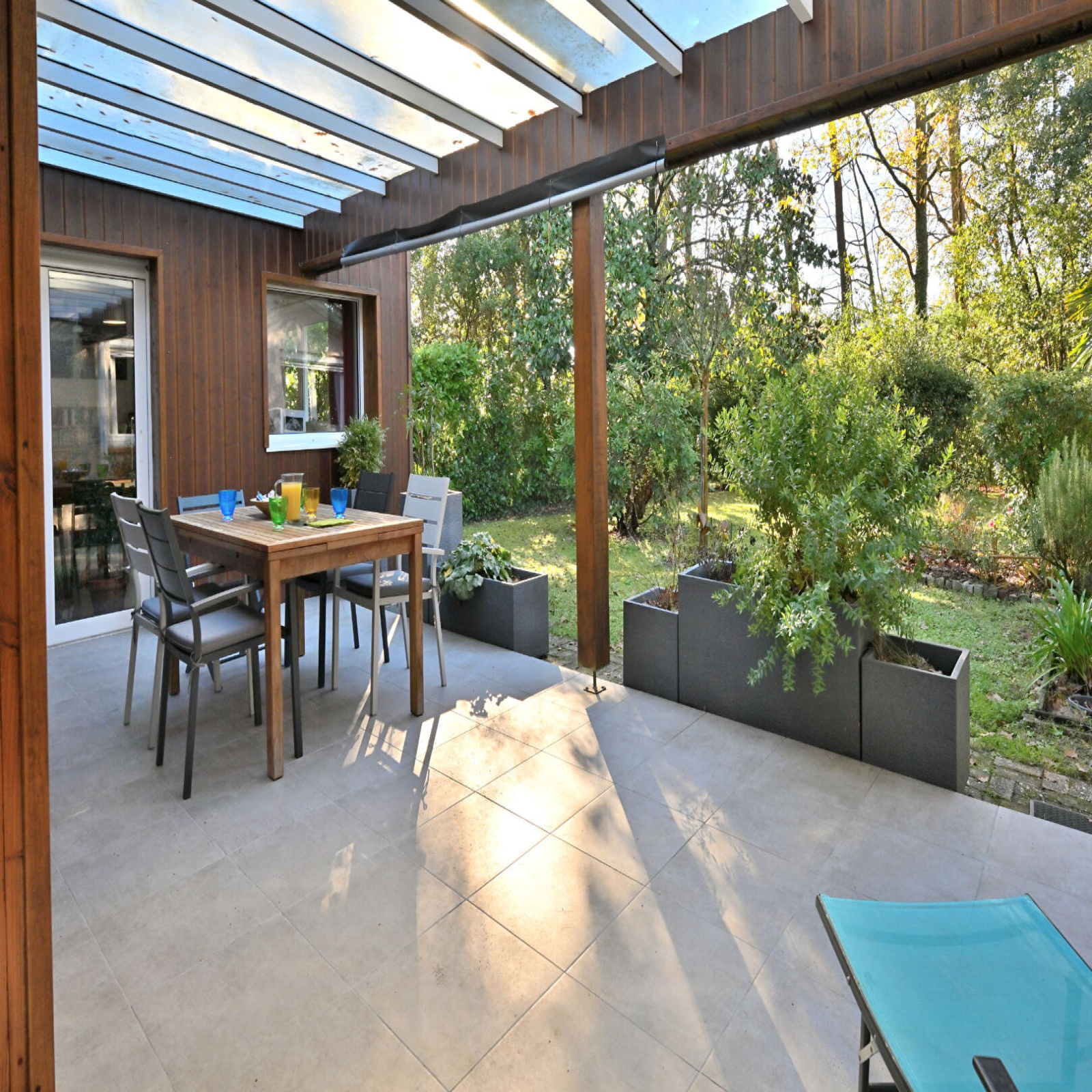 Le jardin est piscinable, orienté Sud et dispose d'un chalet.