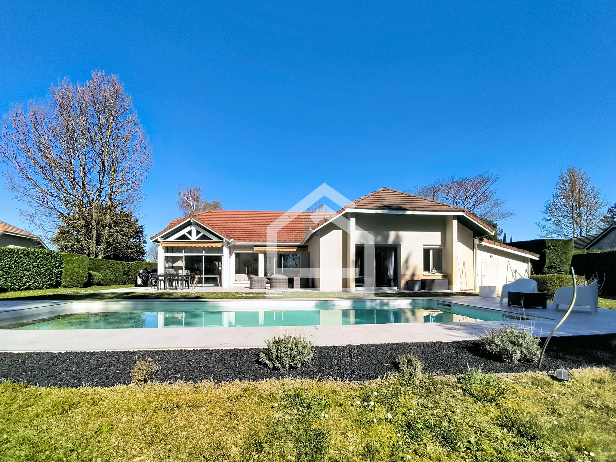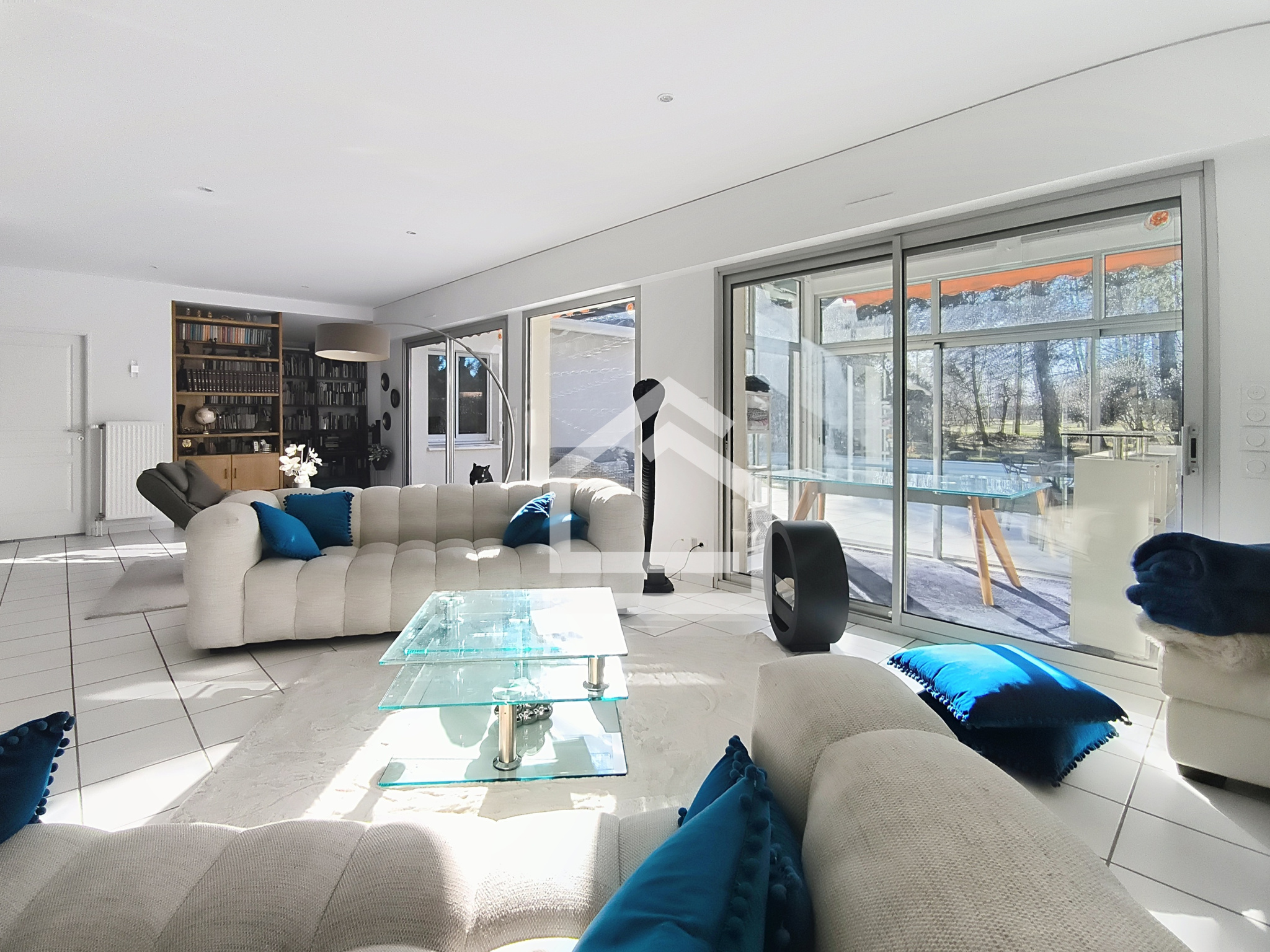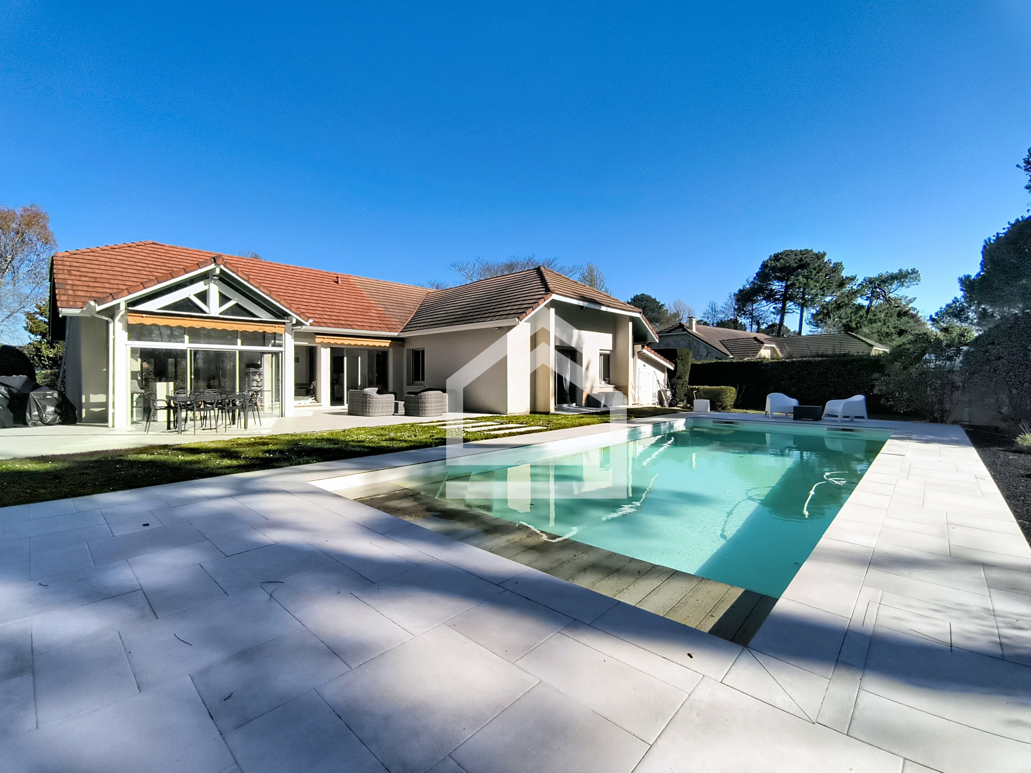 L'agence Cadre D’Envies Pessac a le plaisir de vous présenter cette élégante propriété de plain-pied d’environ 210 m², édifiée sur une superbe parcelle paysagée de 2 211 m², idéalement située au cœur du prestigieux domaine des Domaniales du Golf de Pessac.