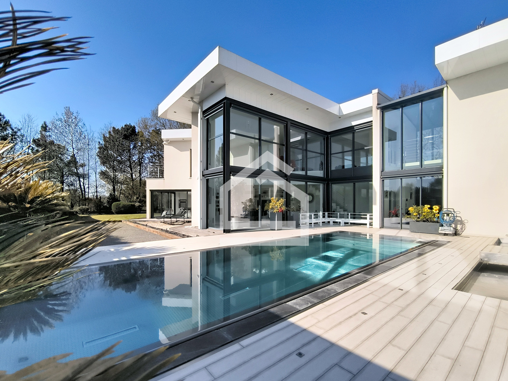 L'agence CADRE D'ENVIES PESSAC a le plaisir de vous présenter dans l’intimité d’un domaine résidentiel prisé, cette propriété d’architecte réalisée en 2012 qui incarne une vision résolument contemporaine du luxe : une élégance maîtrisée, une architecture affirmée et une qualité d’exécution irréprochable.