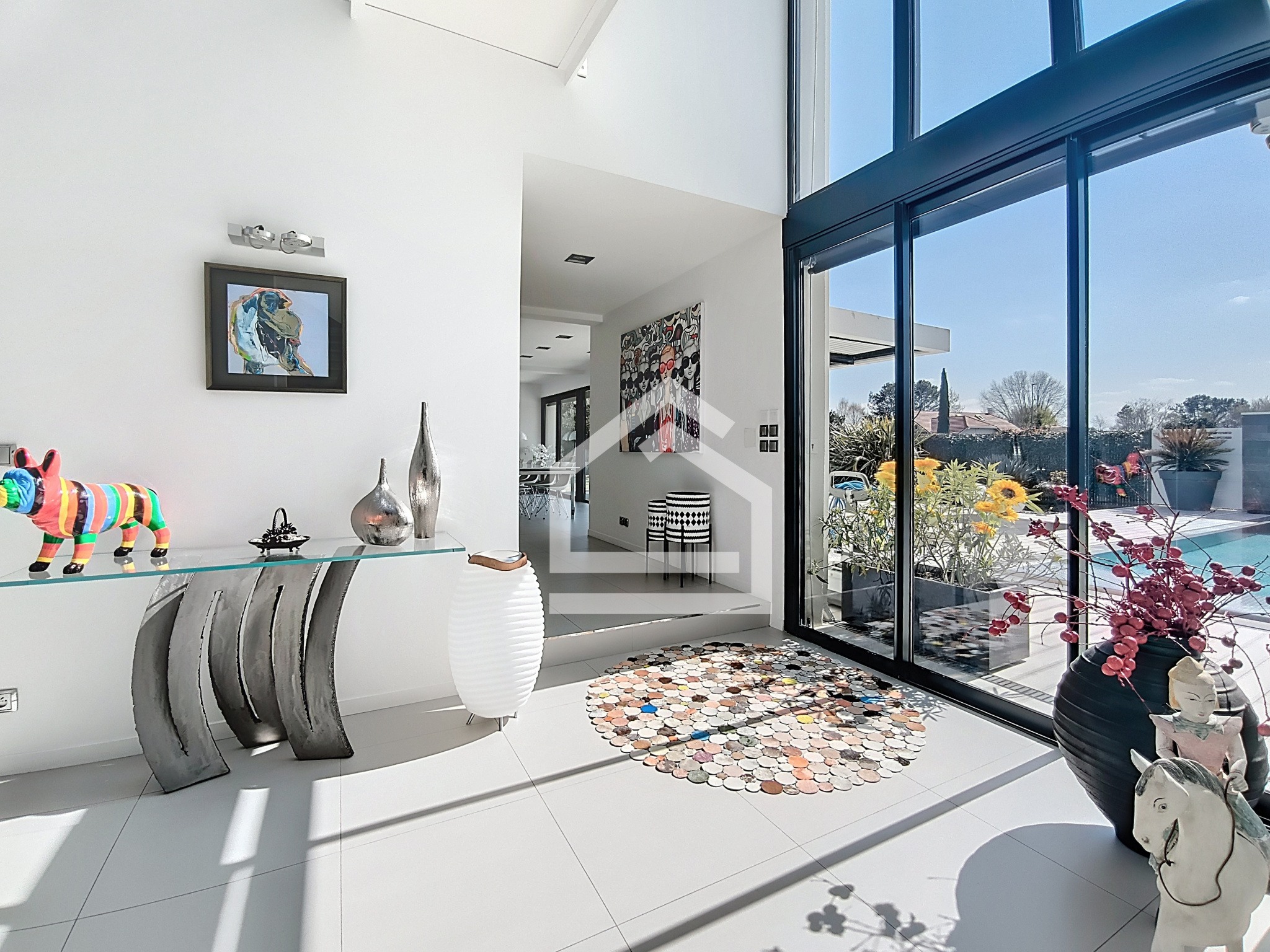 Dès l’entrée, le ton est donné : un vestibule aux proportions généreuses ouvre sur des espaces de réception spectaculaires, conçus pour conjuguer esthétique et convivialité.