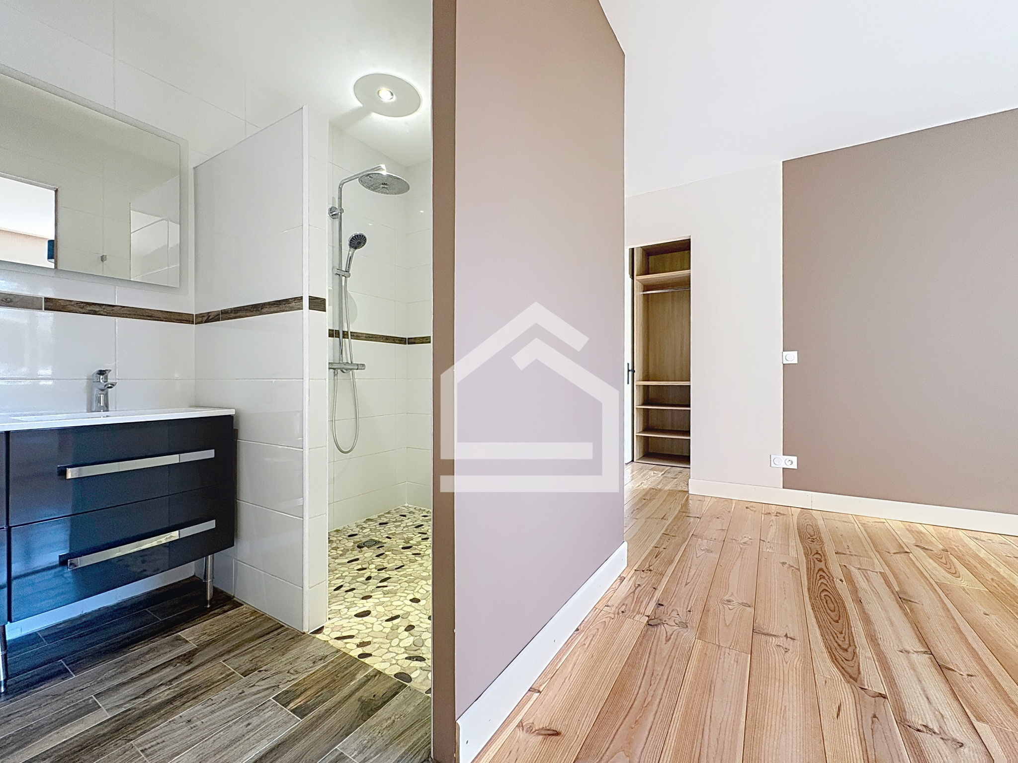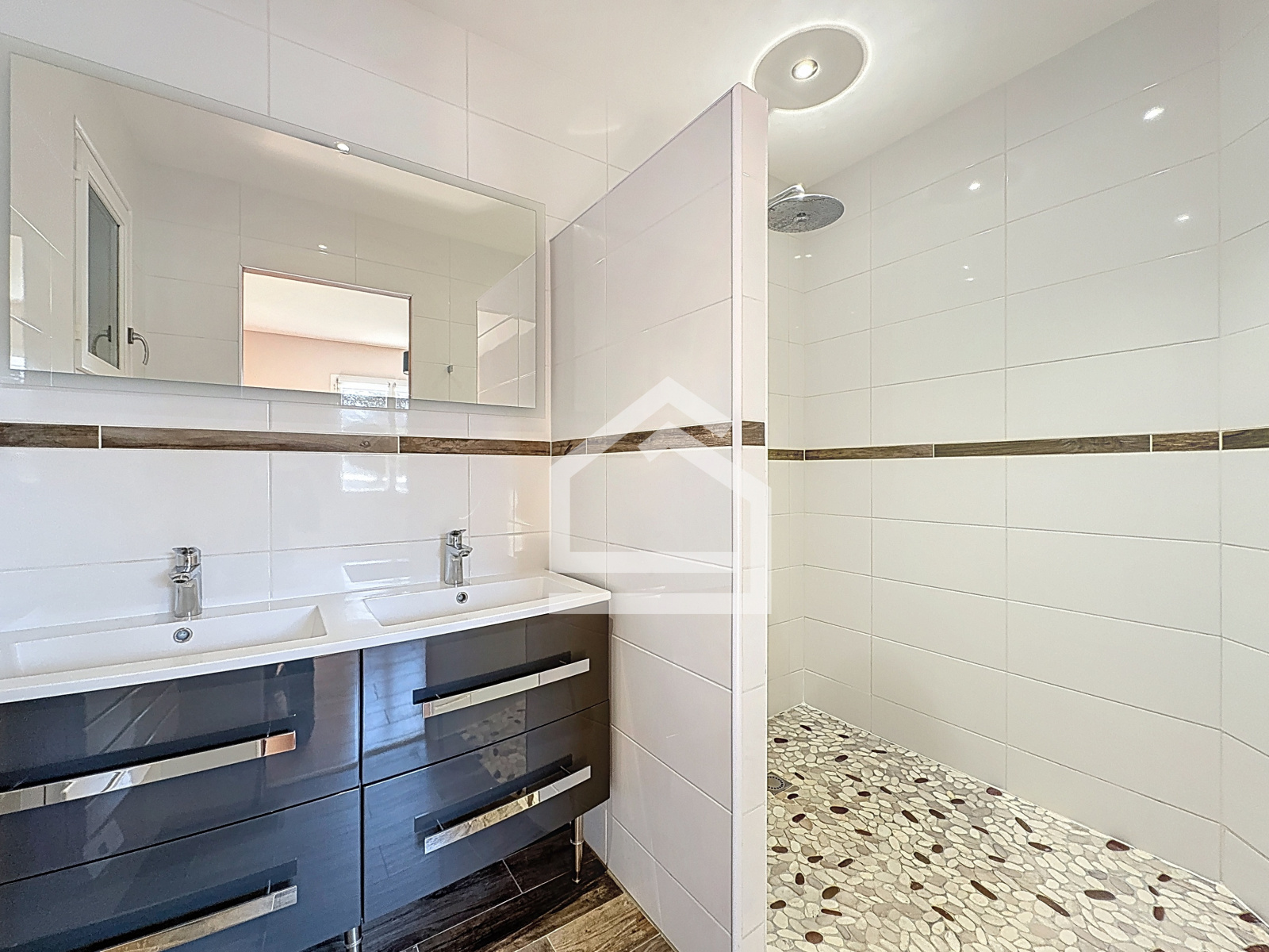 La partie nuit comprend trois chambres confortables, dont une suite parentale avec salle d’eau et dressing. Une quatrième chambre est possible en réaménageant facilement l’un des deux garages. Une salle de bains et un WC séparé complètent l’ensemble.
