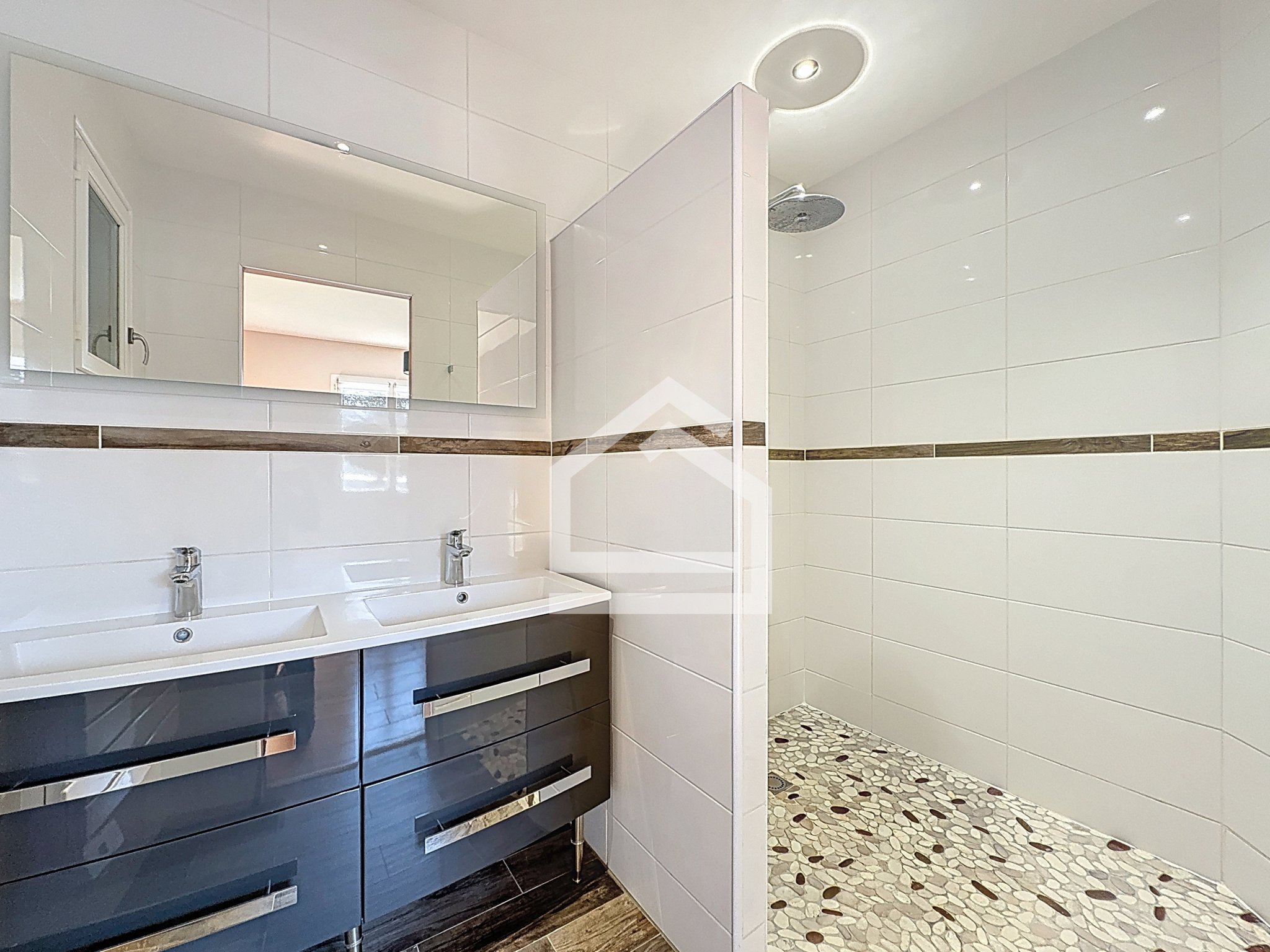 À l’avant de la maison, deux garages ainsi que deux places de stationnement viennent compléter les prestations.